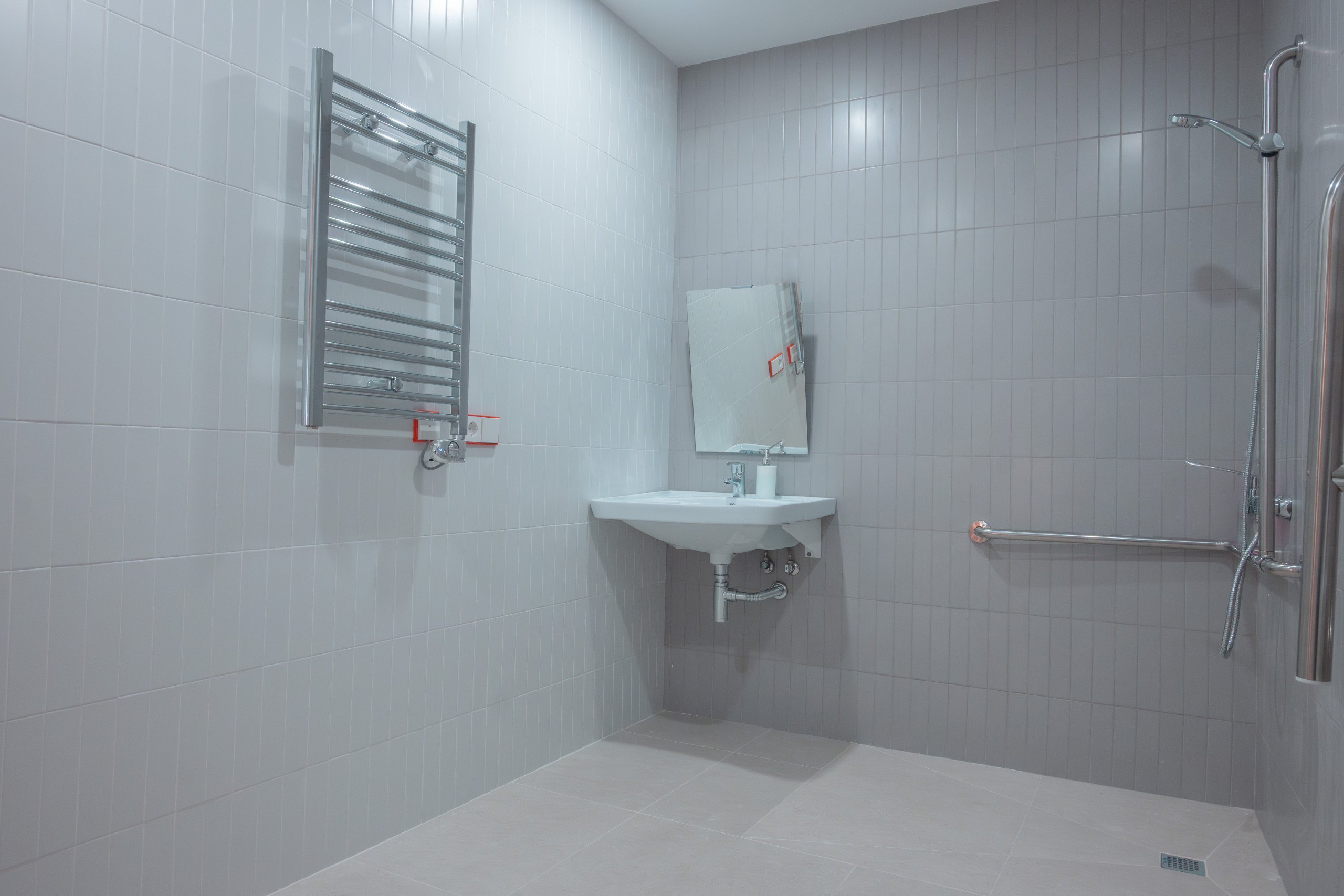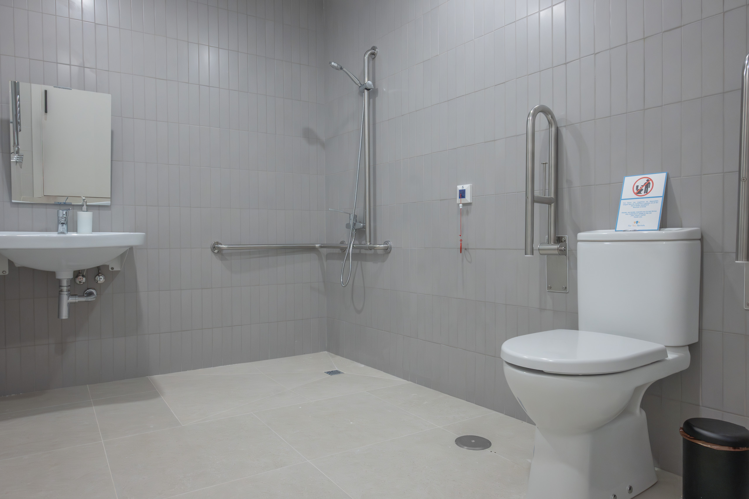 The bathroom has all the necessary adaptations, including a floor-level shower, support bars, and a spacious area for unrestricted mobility. The bedroom is cozy and well-distributed, providing optimal rest.