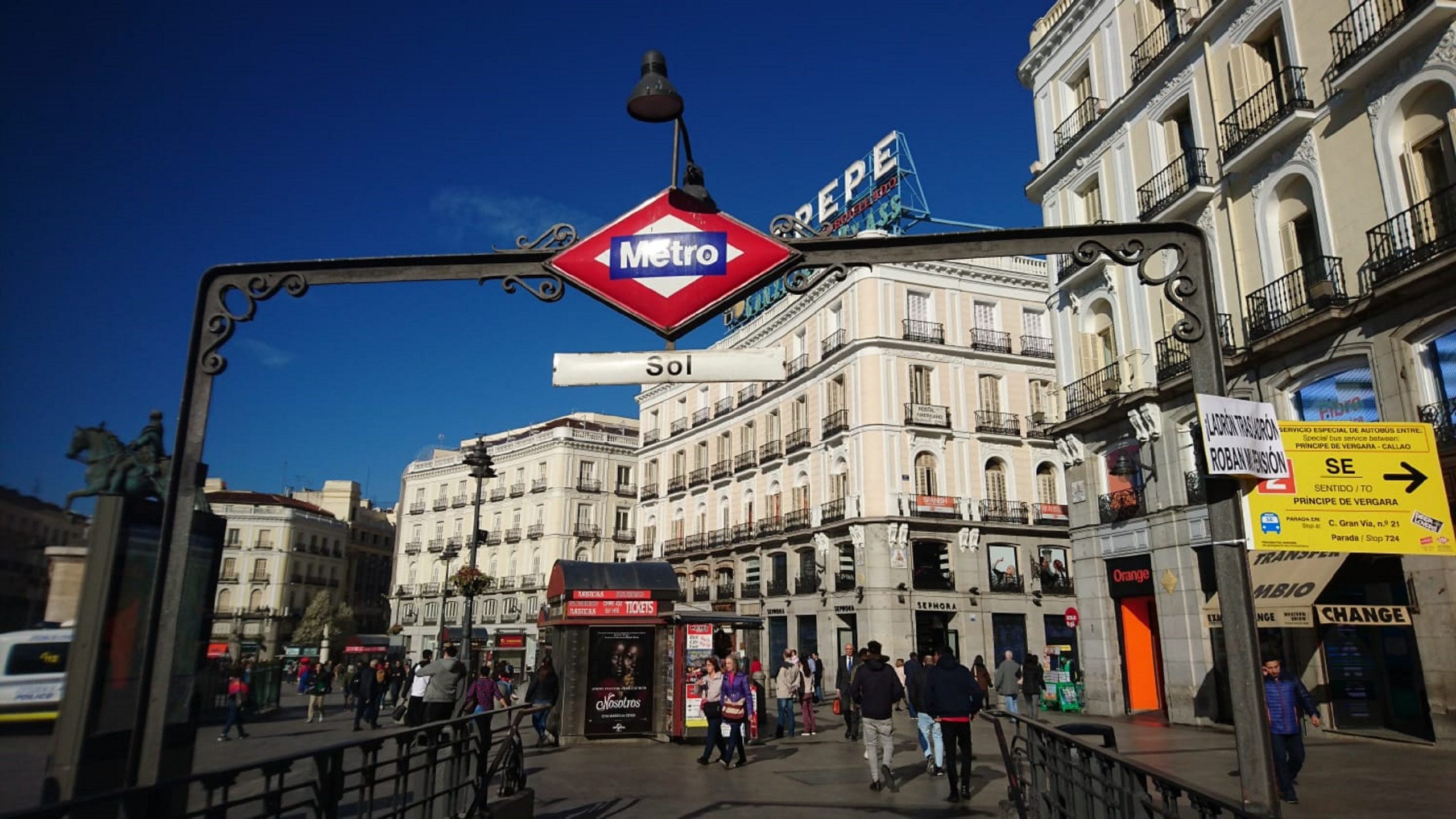 Gran Via Metro public transport just 1 minute, Sol train just 5 minutes. Tourist bus stop just 2 min. on Gran Via.