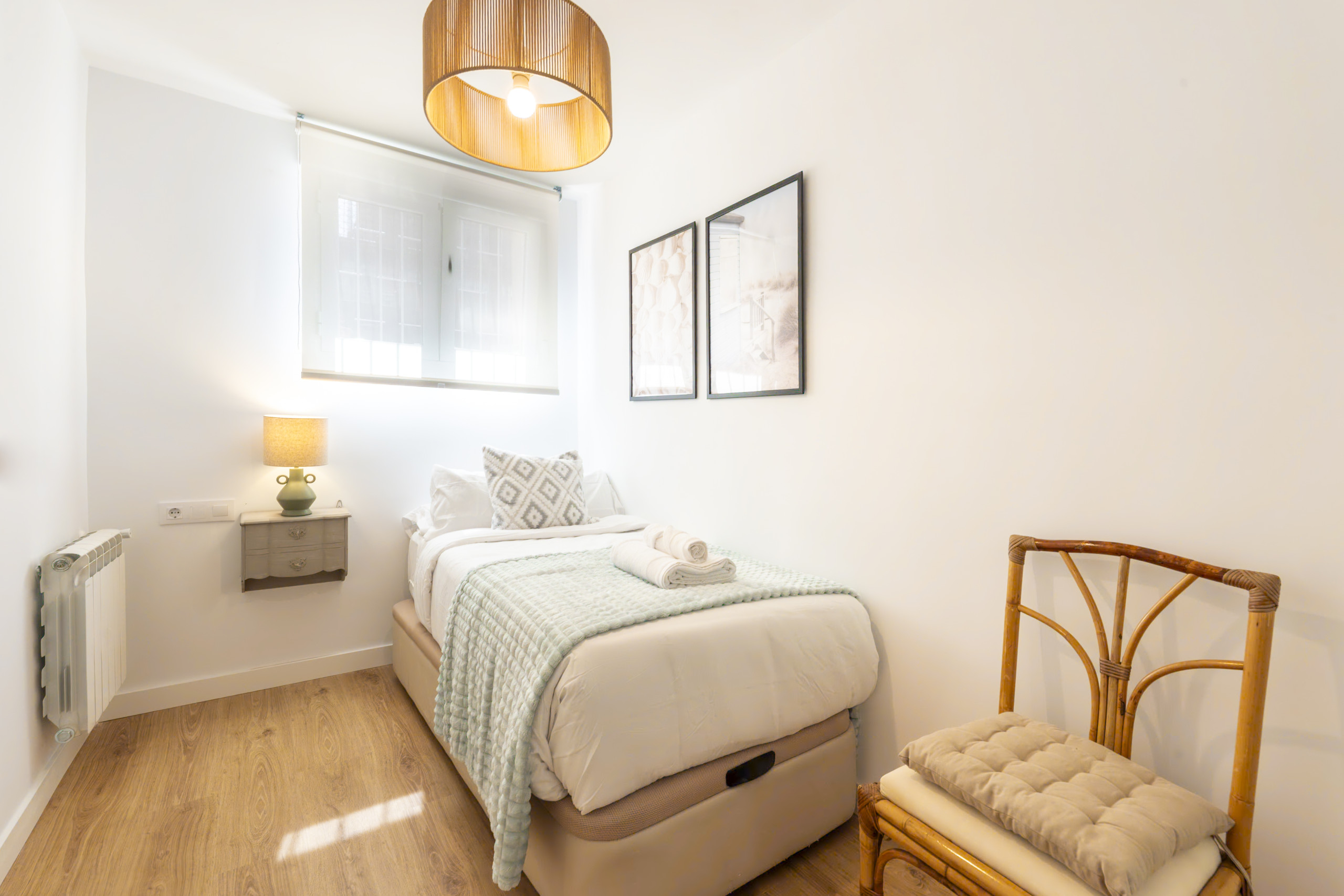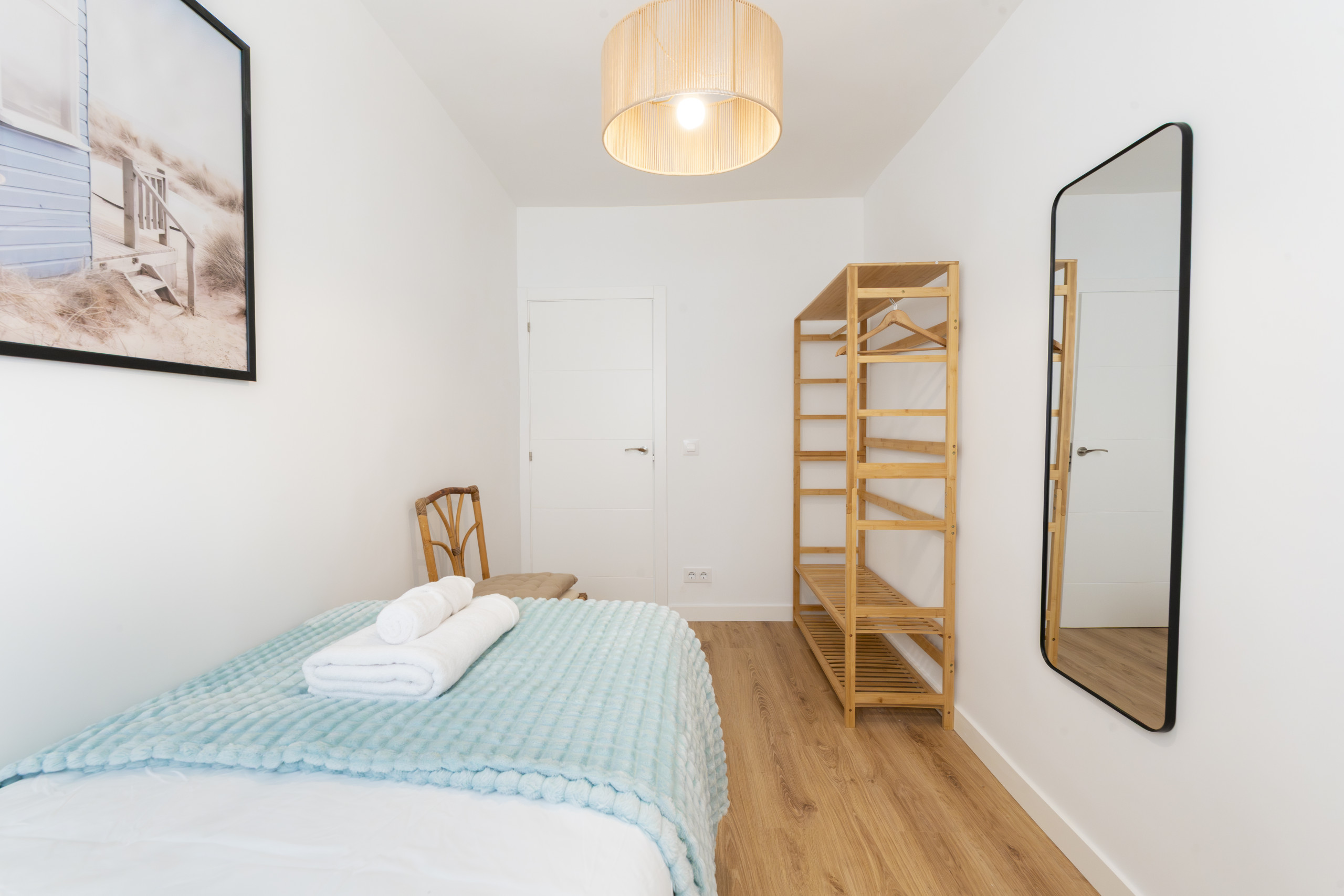 • Second bedroom: Designed for a single person, this cosy space has a single bed and a shelf where clothes and other personal items can be organised, providing a practical and efficient storage solution.