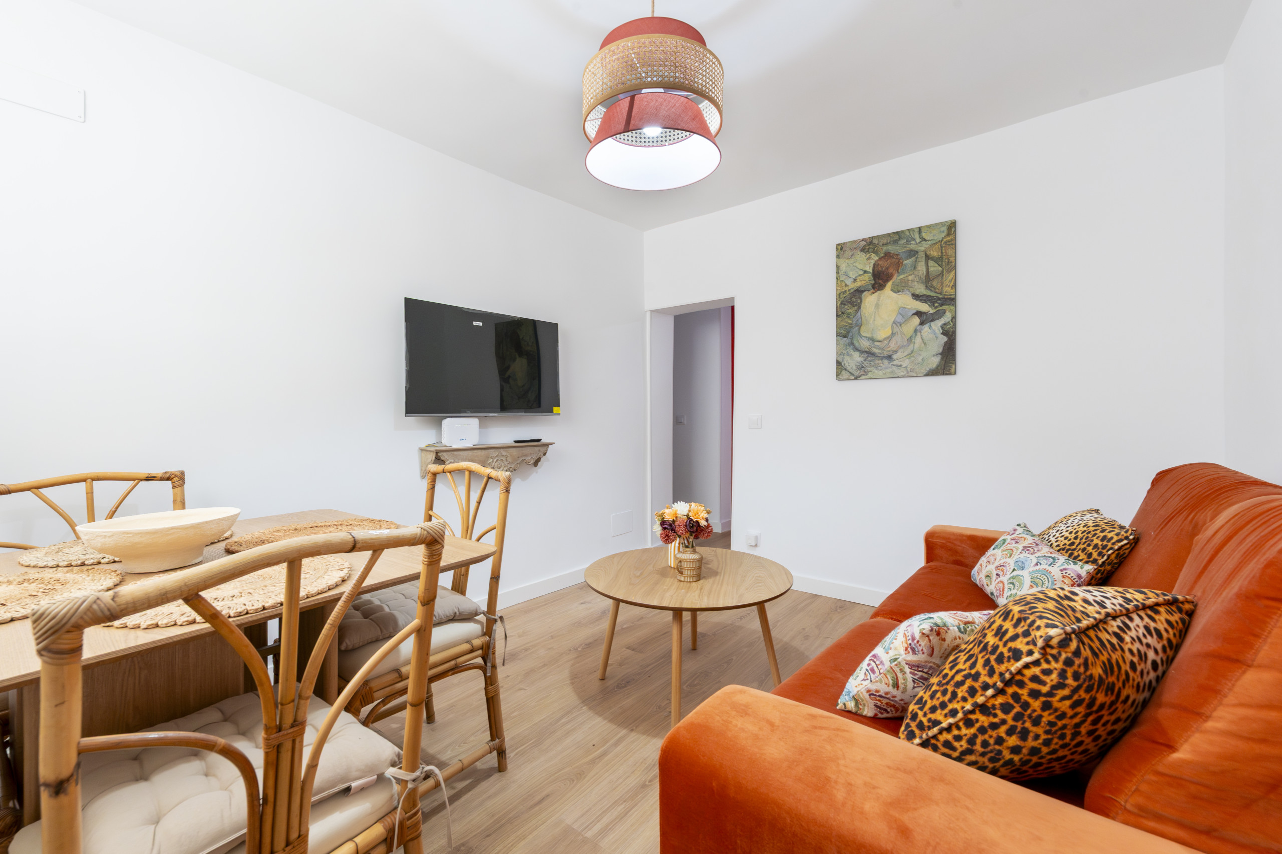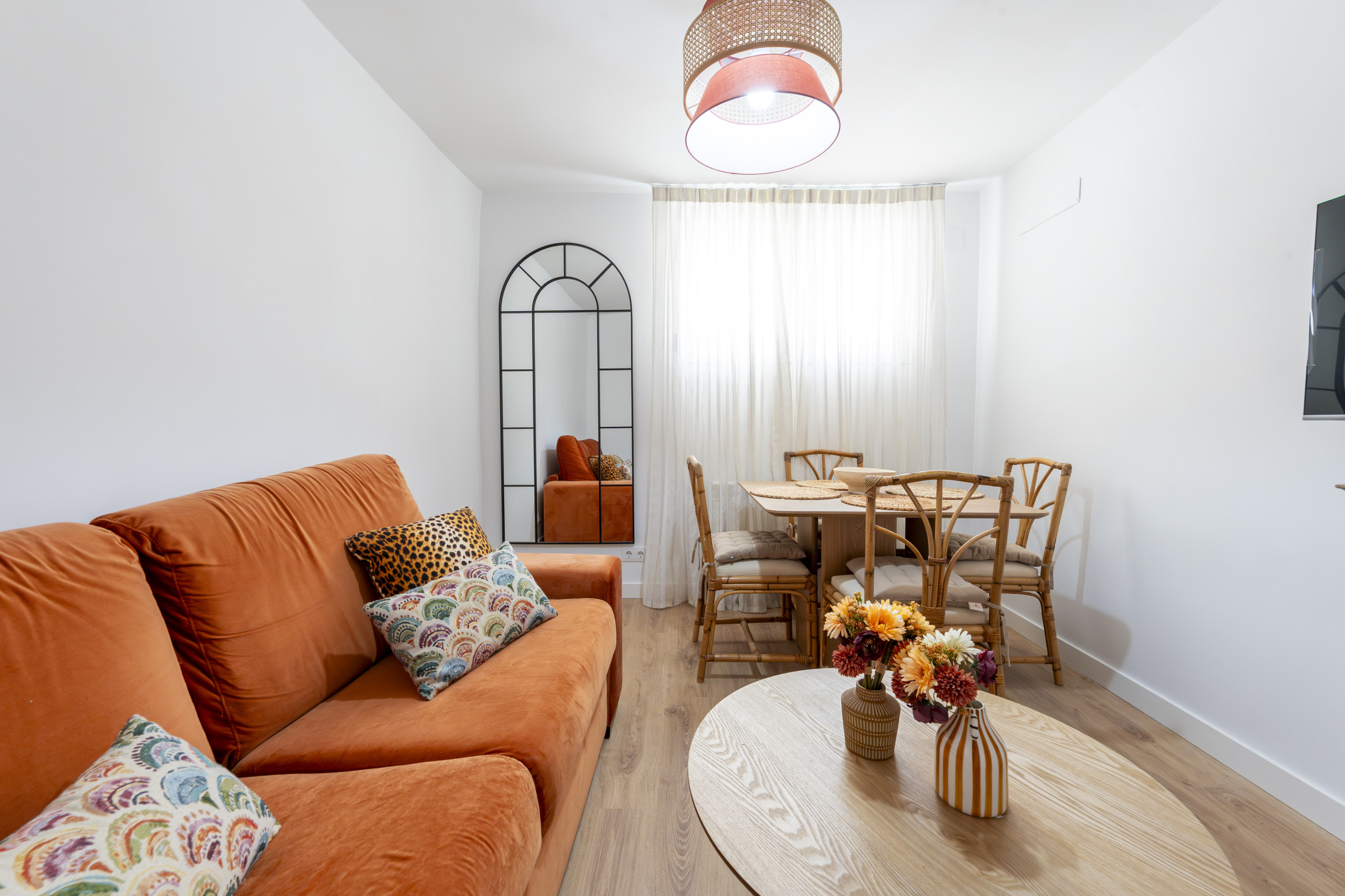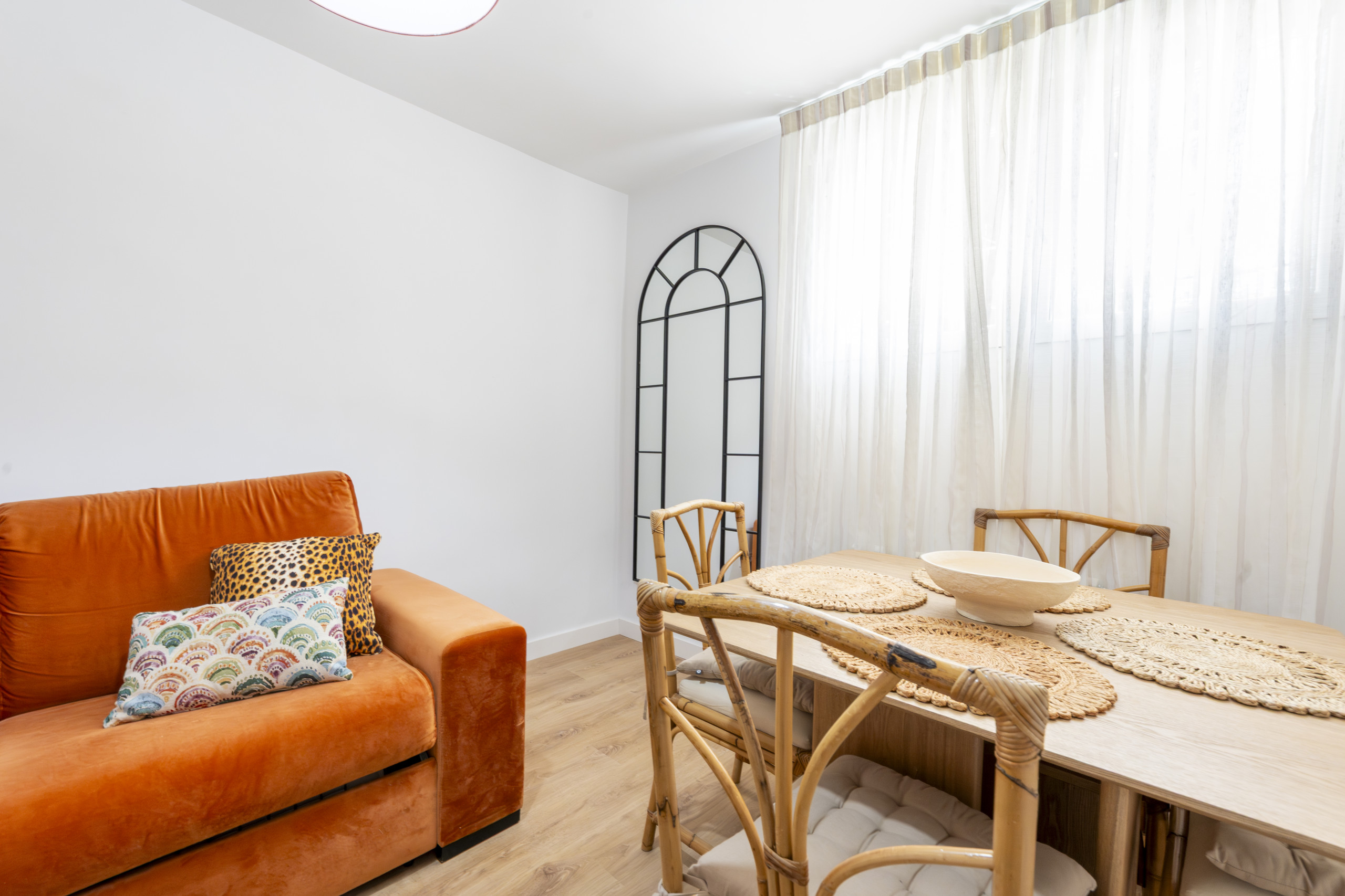 Upon entering the property, we find a cosy living-dining room, a spacious area. This environment is furnished with a comfortable sofa bed, ideal for receiving guests and providing comfortable accommodation. Additionally, the dining area offers a perfect space to share meals with family or friends in a warm and harmonious setting.