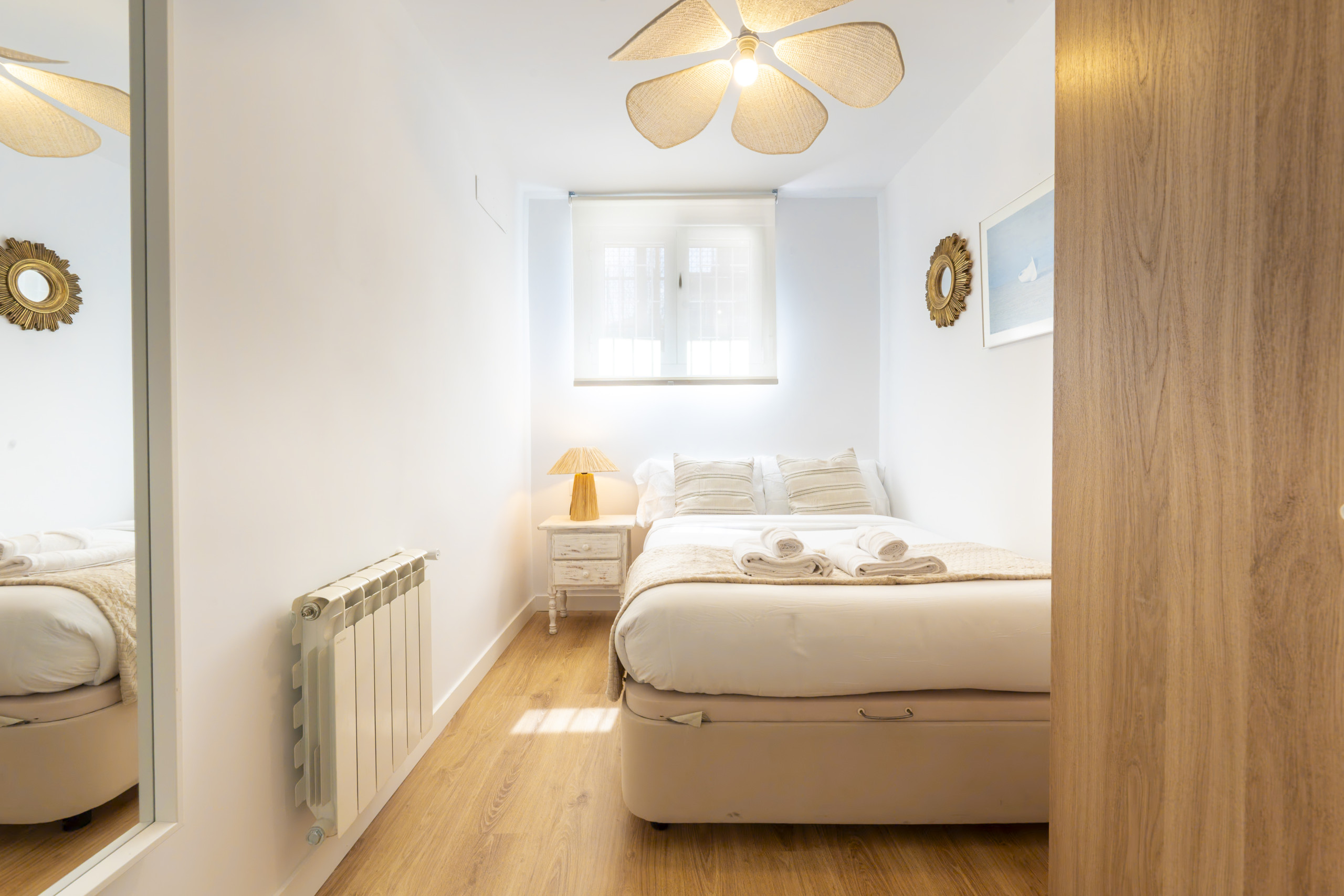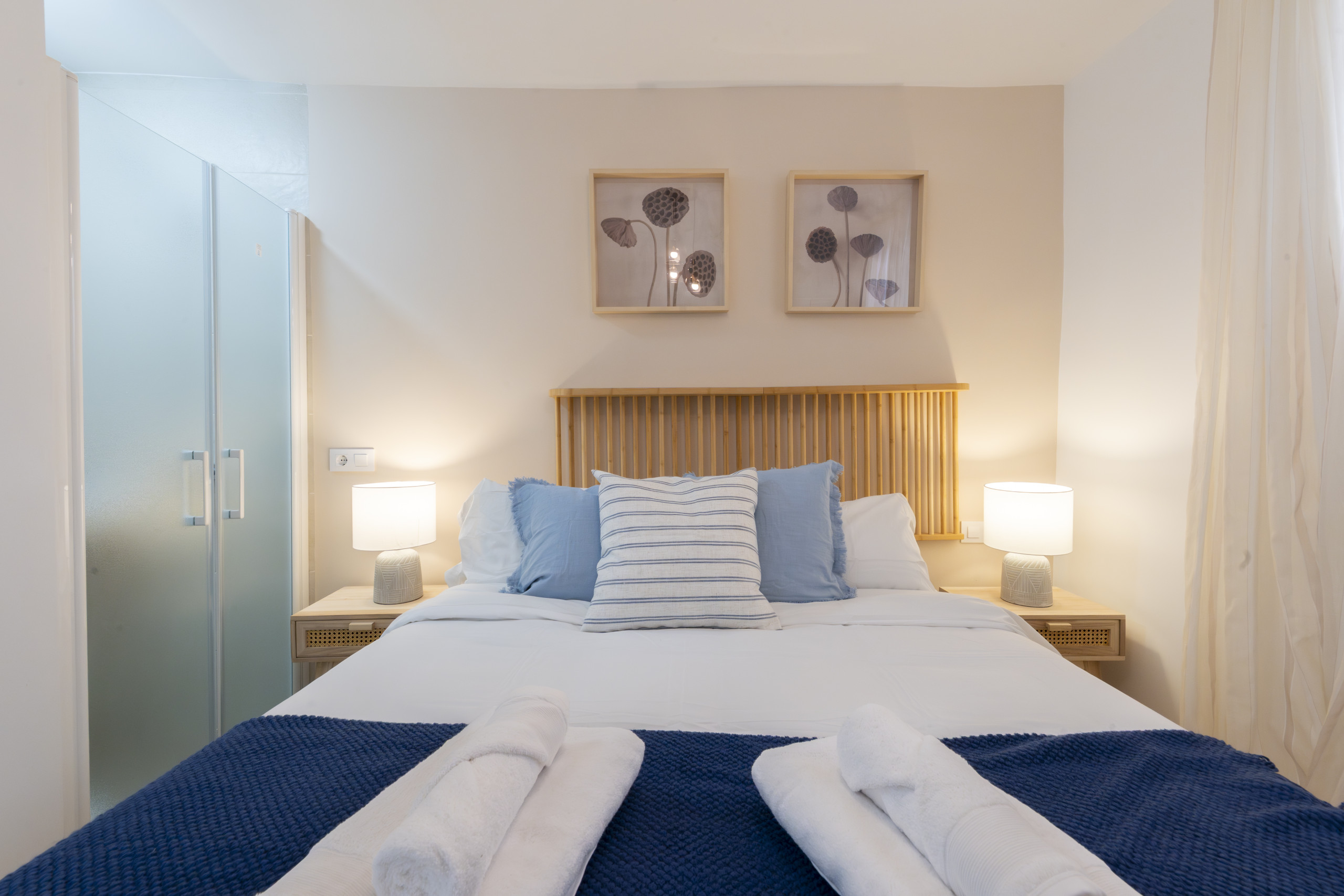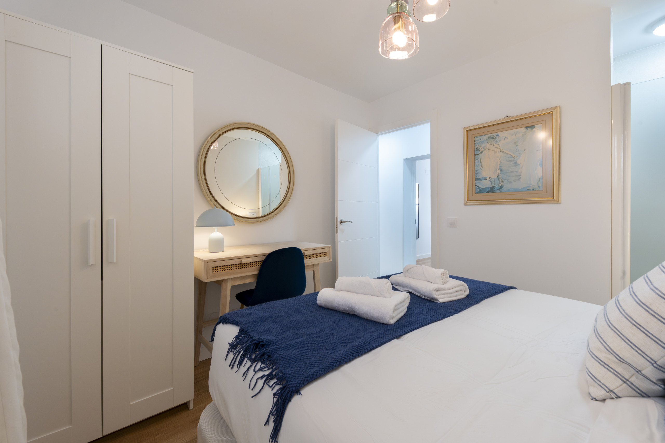 • First bedroom: A spacious room equipped with a double bed that guarantees restful sleep. It also includes a desk, ideal for working or studying from home. As an added value, this bedroom has an en-suite bathroom, fully equipped with a shower tray, offering privacy and comfort for its occupants.