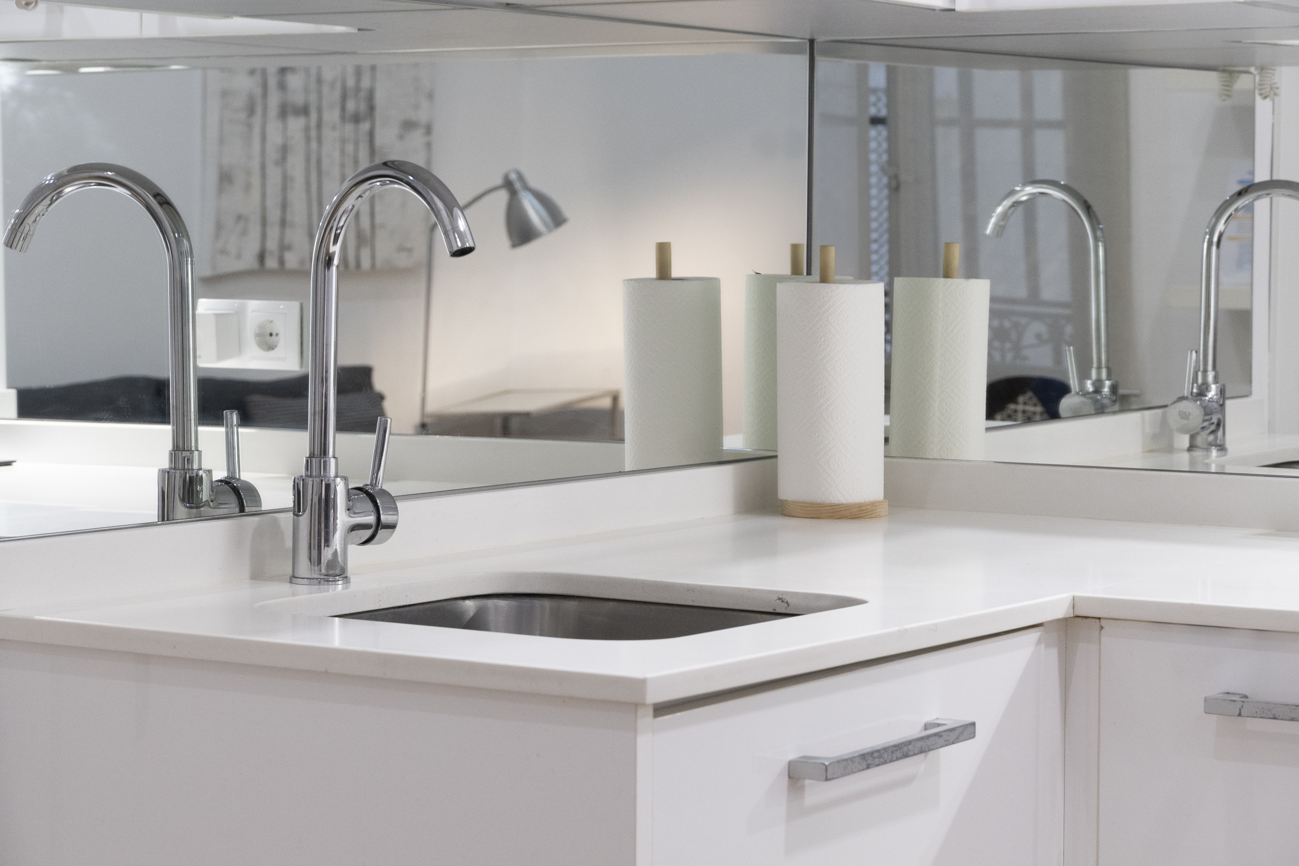 The apartment consists of open plan kitchen, living room, bathroom with a large shower, living room and a spacious bedroom. It is newly renovated and furnished with modern, minimalist style. The appliances are modern and are perfectly integrated into the design. The bedroom is spacious and bright with double glazing. Bed is 150cm, Queen Size