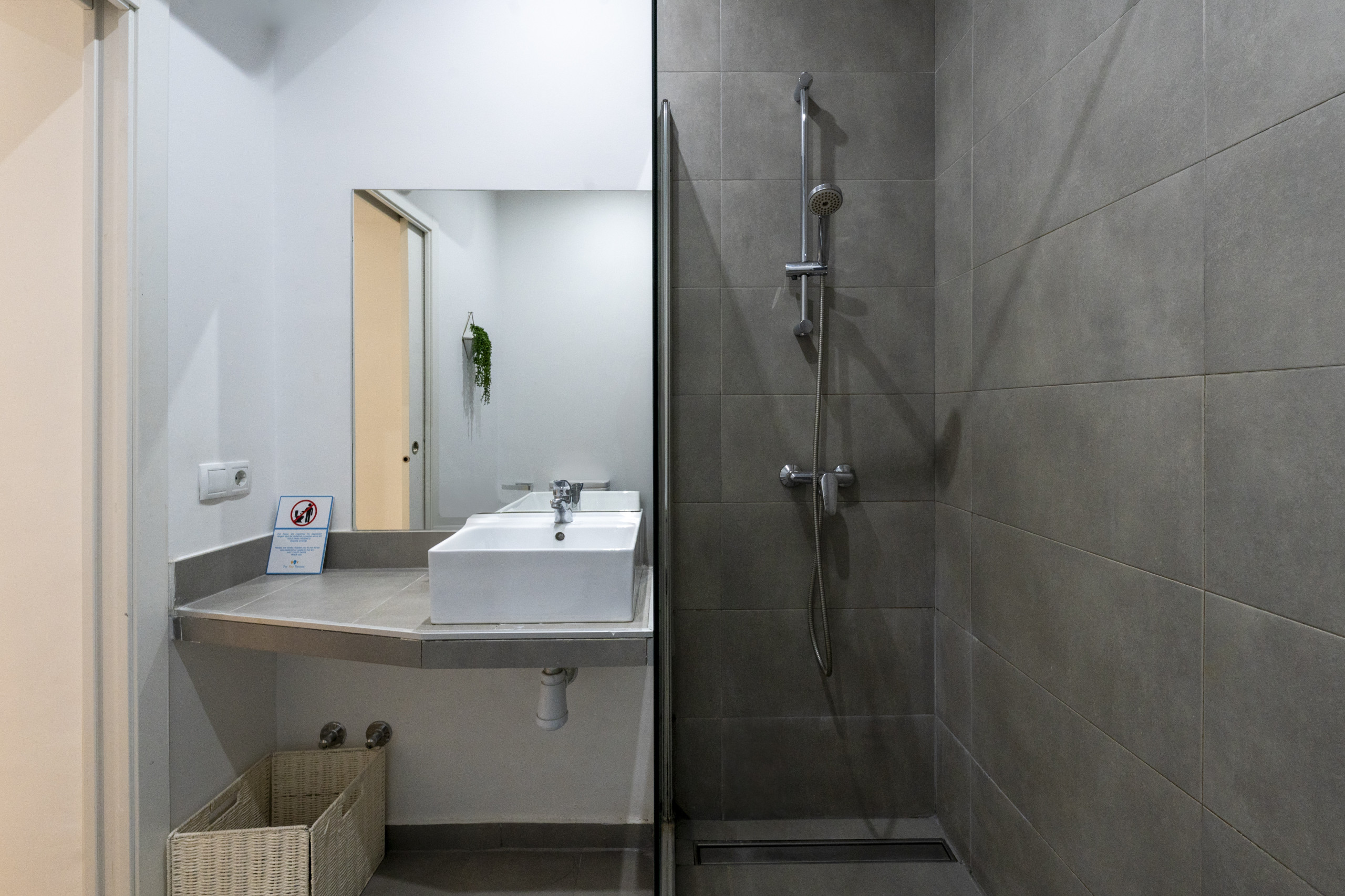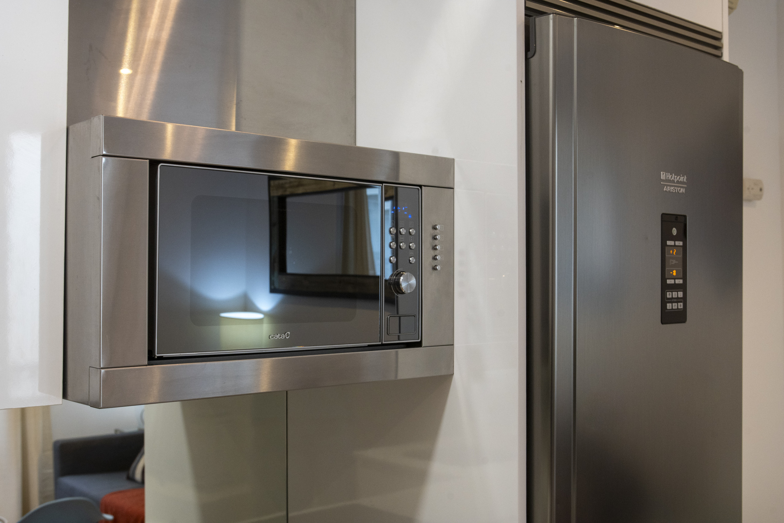 The apartment consists of open plan kitchen, living room, bathroom with a large shower, living room and a spacious bedroom. It is newly renovated and furnished with modern, minimalist style. The appliances are modern and are perfectly integrated into the design. The bedroom is spacious and bright with double glazing. Bed is 150cm, Queen Size