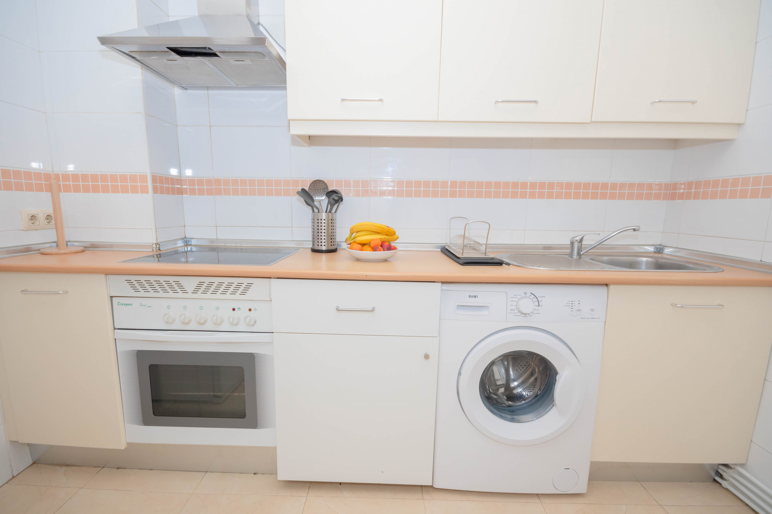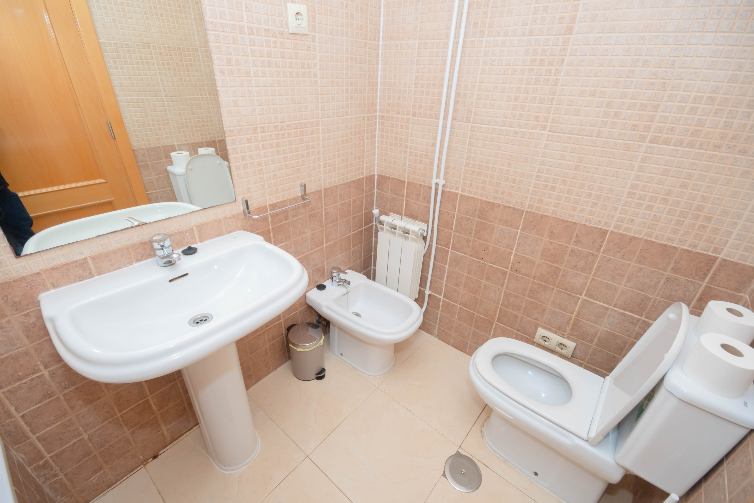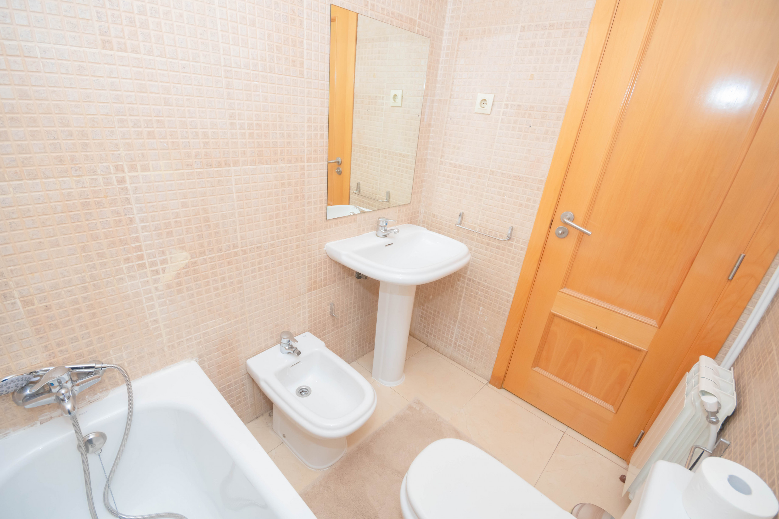 The apartment has a fully equipped kitchen, perfect for preparing your favorite meals. The kitchen has everything you need, such as a fridge, oven, microwave, coffee maker, toaster, kitchen utensils and crockery. In addition, the apartment has three full bathrooms. One with a bathtub next to the room with two double beds en suite, the second also with a bathtub next to the room with a single bed. And the third with a shower tray when entering the house next to the room with a bed and a sofa bed.