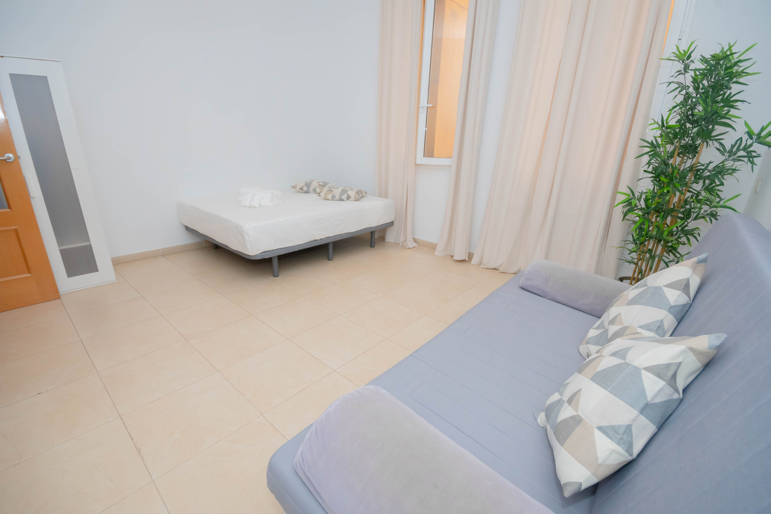 2. Room with double bed and double sofa bed: This room is ideal for a family or a group of friends, as it has a double bed and a double sofa bed. The room is spacious and bright, with a simple decoration.