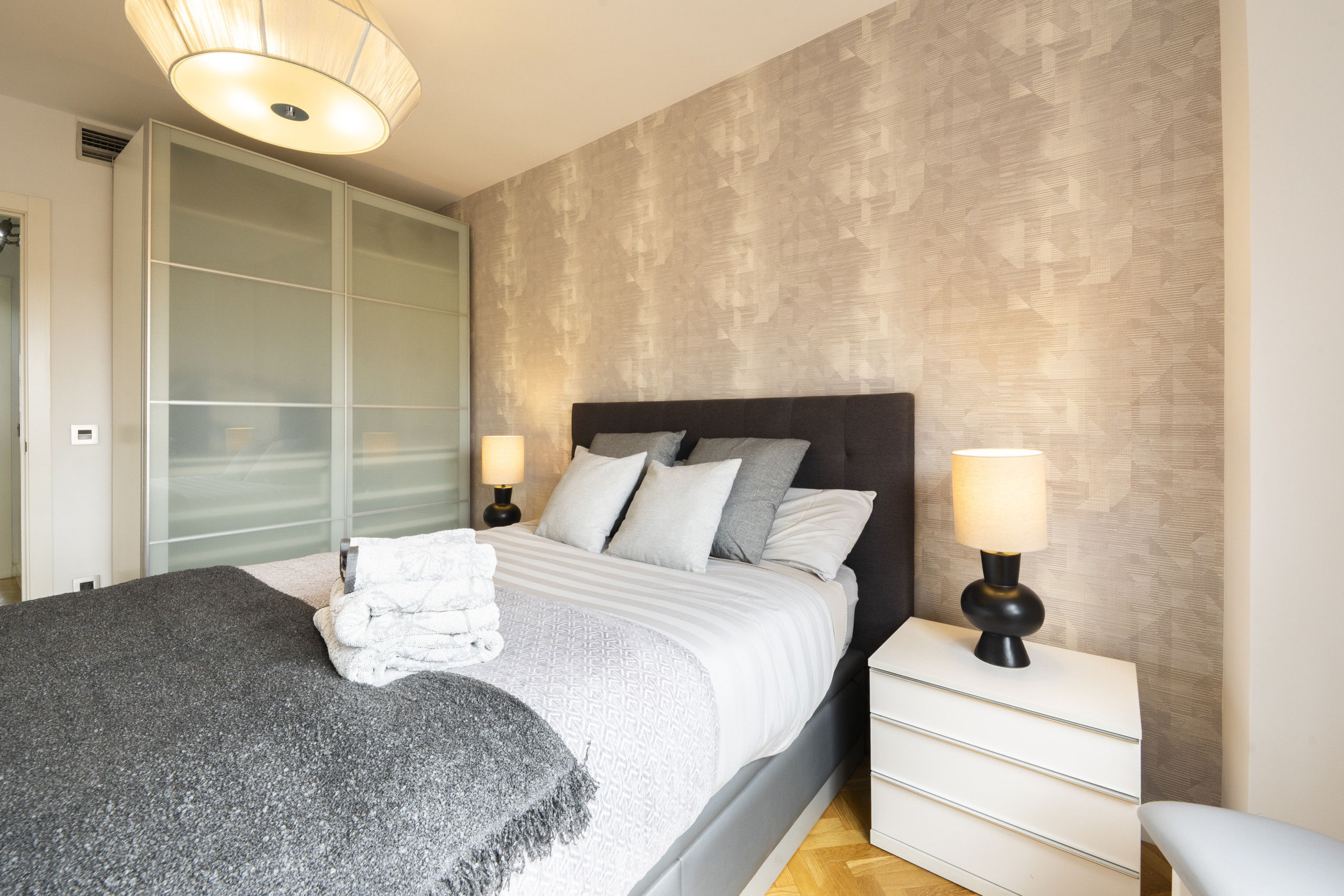 Temporary Rental Flat. Discover this magnificent flat located in a private urbanisation that offers excellent amenities, such as Swimming Pool, Paddle Tennis Court, Children's Area and close to the Pyramides metro station.