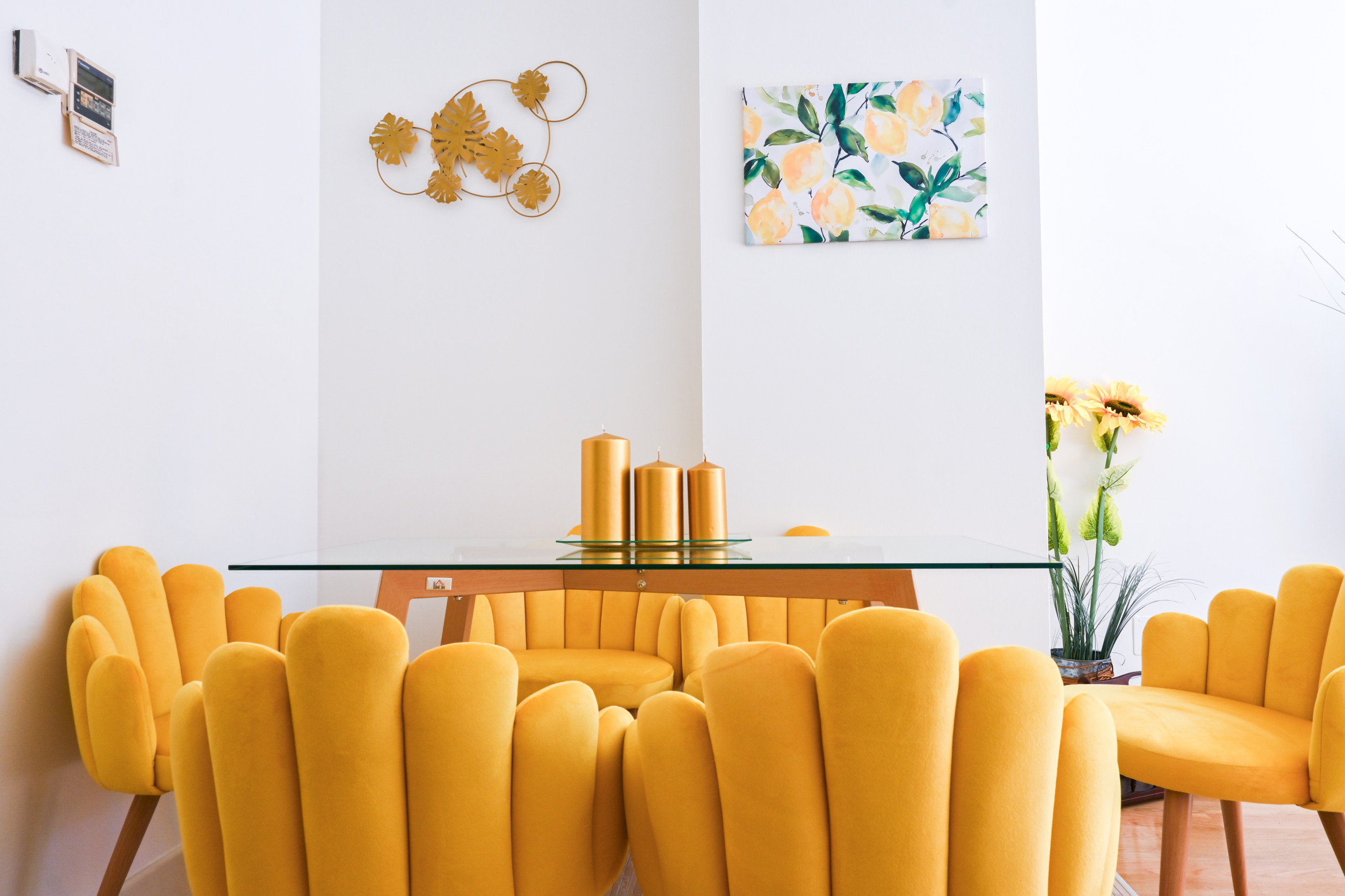 The dining room, with its elegant table and six chairs, is ideal for enjoying home-cooked meals together or for working remotely in a comfortable and elegant environment. The kitchen, fully equipped with modern appliances and cookware, gives you the freedom to prepare your favorite dishes with ease and style.