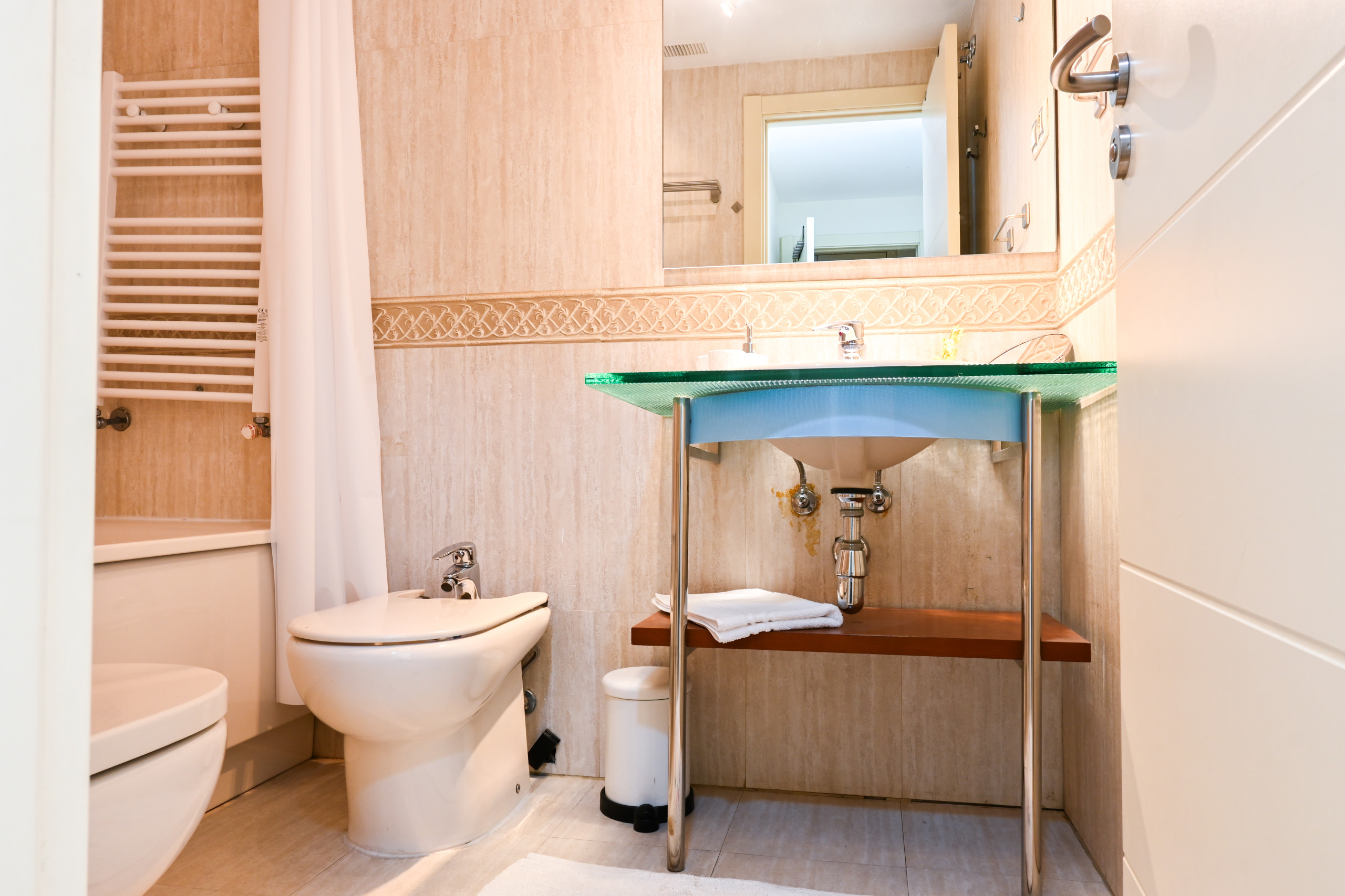 The two bedrooms are designed to offer you maximum comfort and privacy, with comfortable double beds and soft, cozy bedding. Both spaces reflect the same attention to detail and elegance as the rest of the apartment. One of the bathrooms is equipped with a large shower tray, while the other offers a comfortable bathtub so you can relax and pamper yourself.