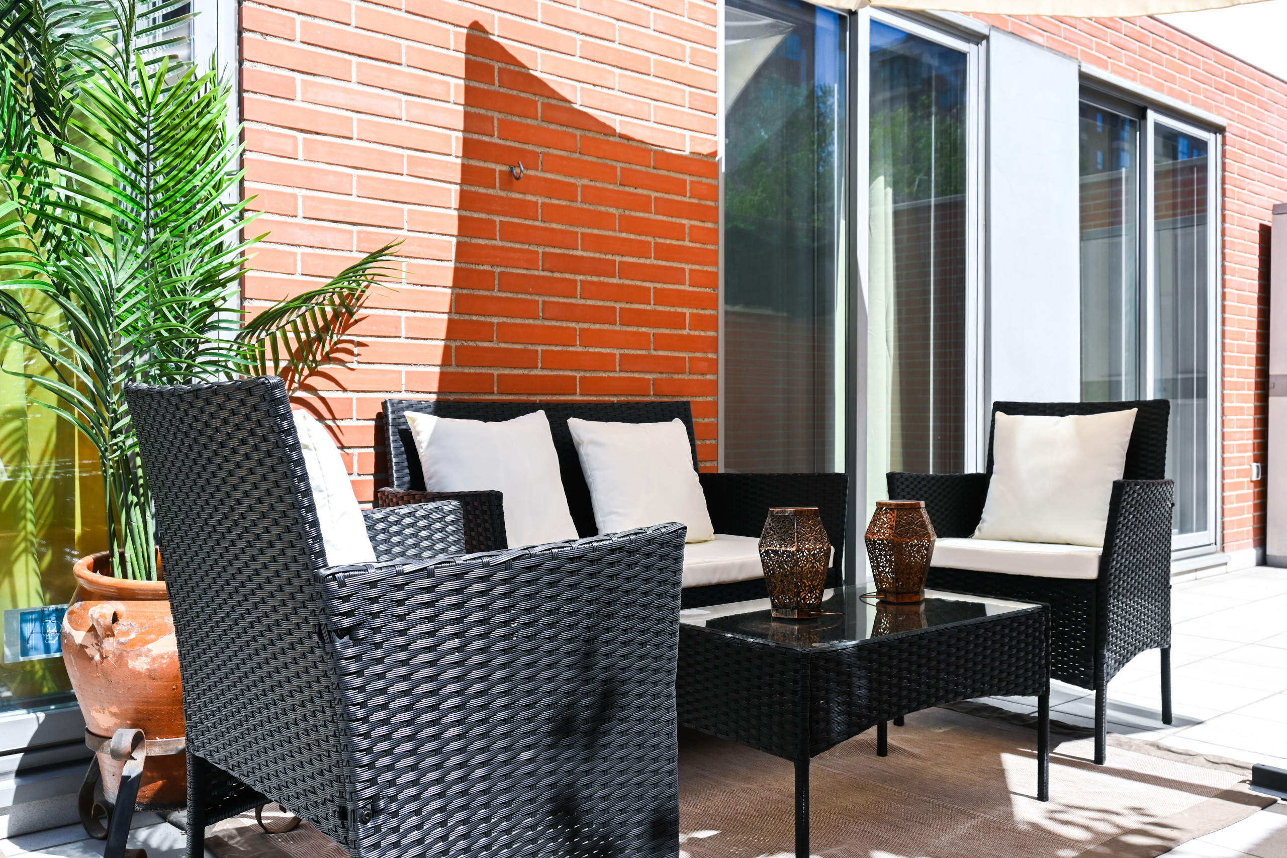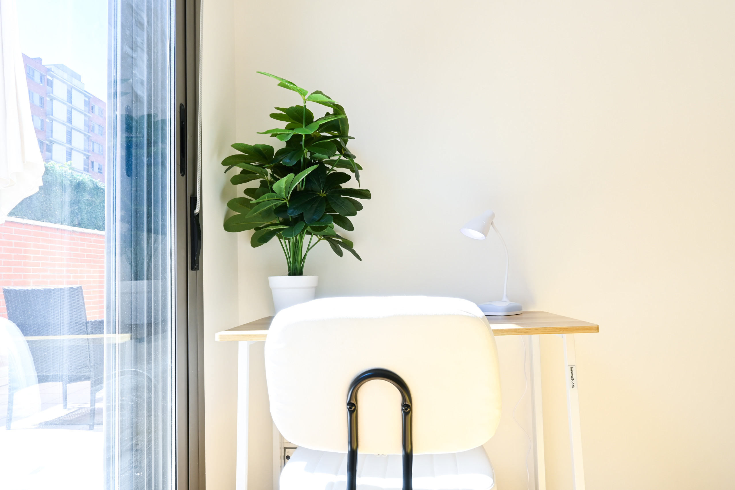 But that is not all. This apartment also features a charming interior patio, furnished with comfortable outdoor furniture and adorned with lush plants, where you can enjoy quiet moments outdoors or host alfresco dinners under the stars.