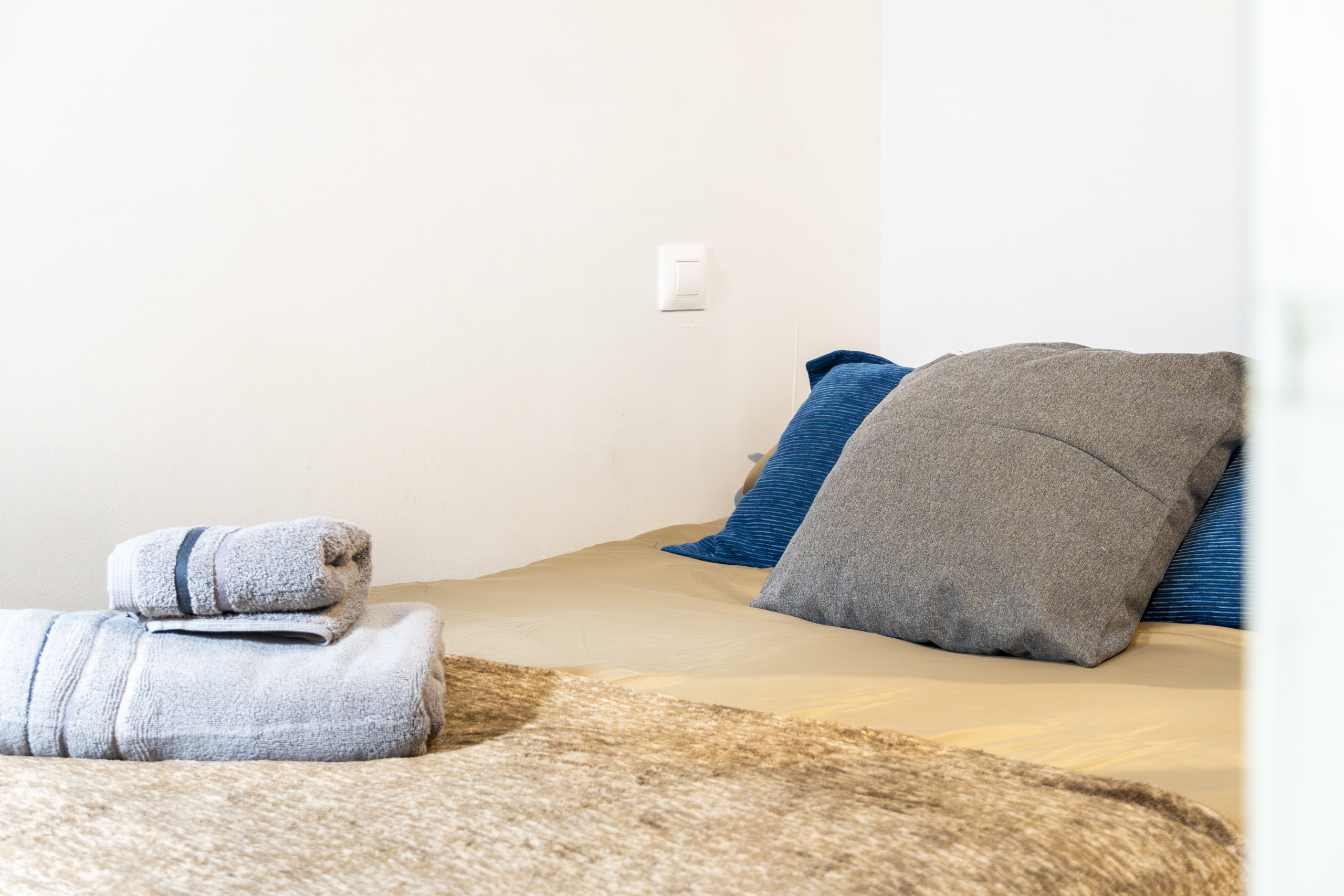 The heart of this flat is its living-dining room, with a double sofa bed for guests and a table for breakfast or work, with an open kitchen, creating a cosy atmosphere. This space has been designed to offer a perfect area for both rest and sharing moments with family and friends. The kitchen is fully equipped with appliances and essential utensils, providing everything necessary to prepare everything from a simple dinner to a more elaborate menu.
