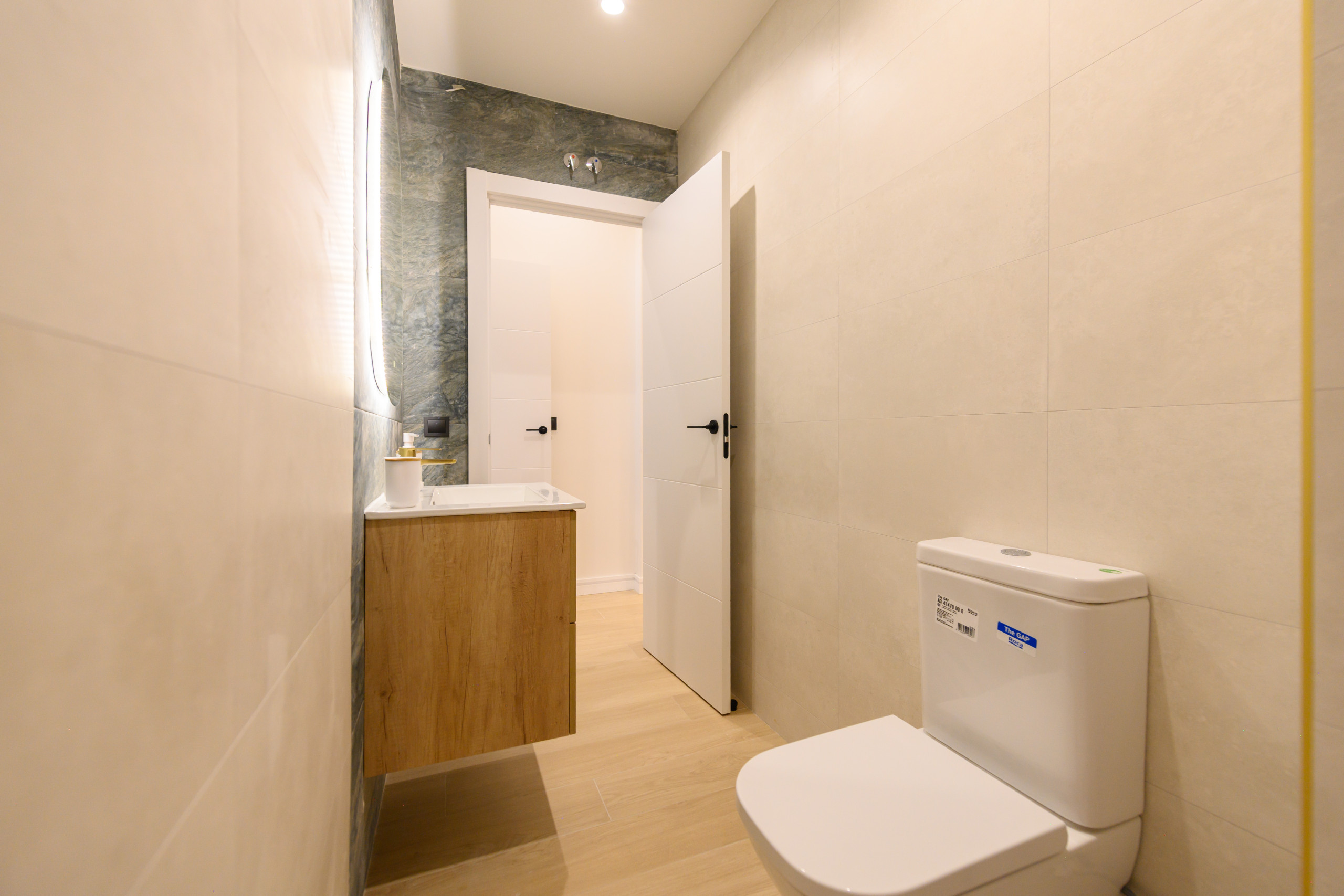 • Additionally, there is a third general-use bathroom, also with a shower tray, washbasin unit, and mirror.