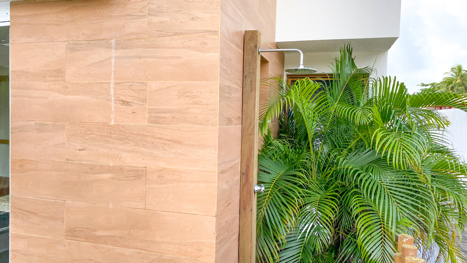 - Ground floor garden with tables, chairs and external shower