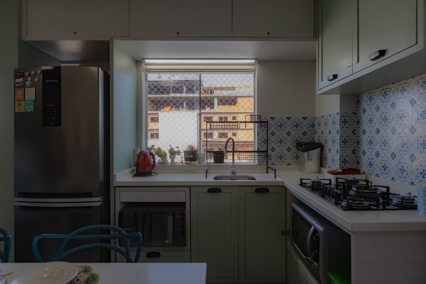 - Complete Kitchen: Equipped with plates, glasses, cutlery, pots, dish towel, freezer, stove, oven, refrigerator, blender, microwave, mixer, food processor, electric pan, toaster, kettle, strainer, thermal bottle, water jug, placemats/coasters and kitchen utensils (except oil and salt) - Counter and dining table in the kitchen