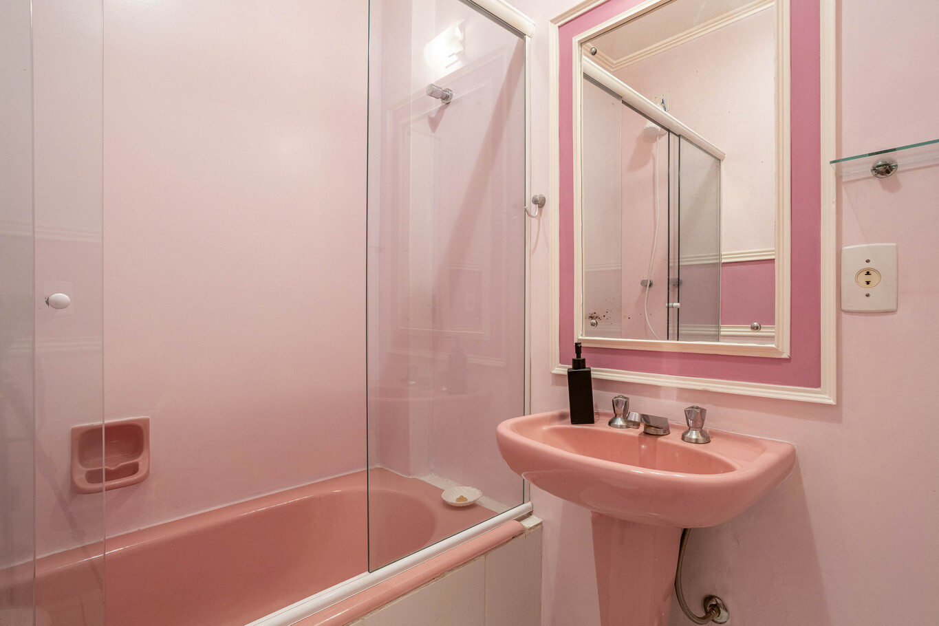 - Social bathroom equipped with glass shower, electric shower, and bathtub.