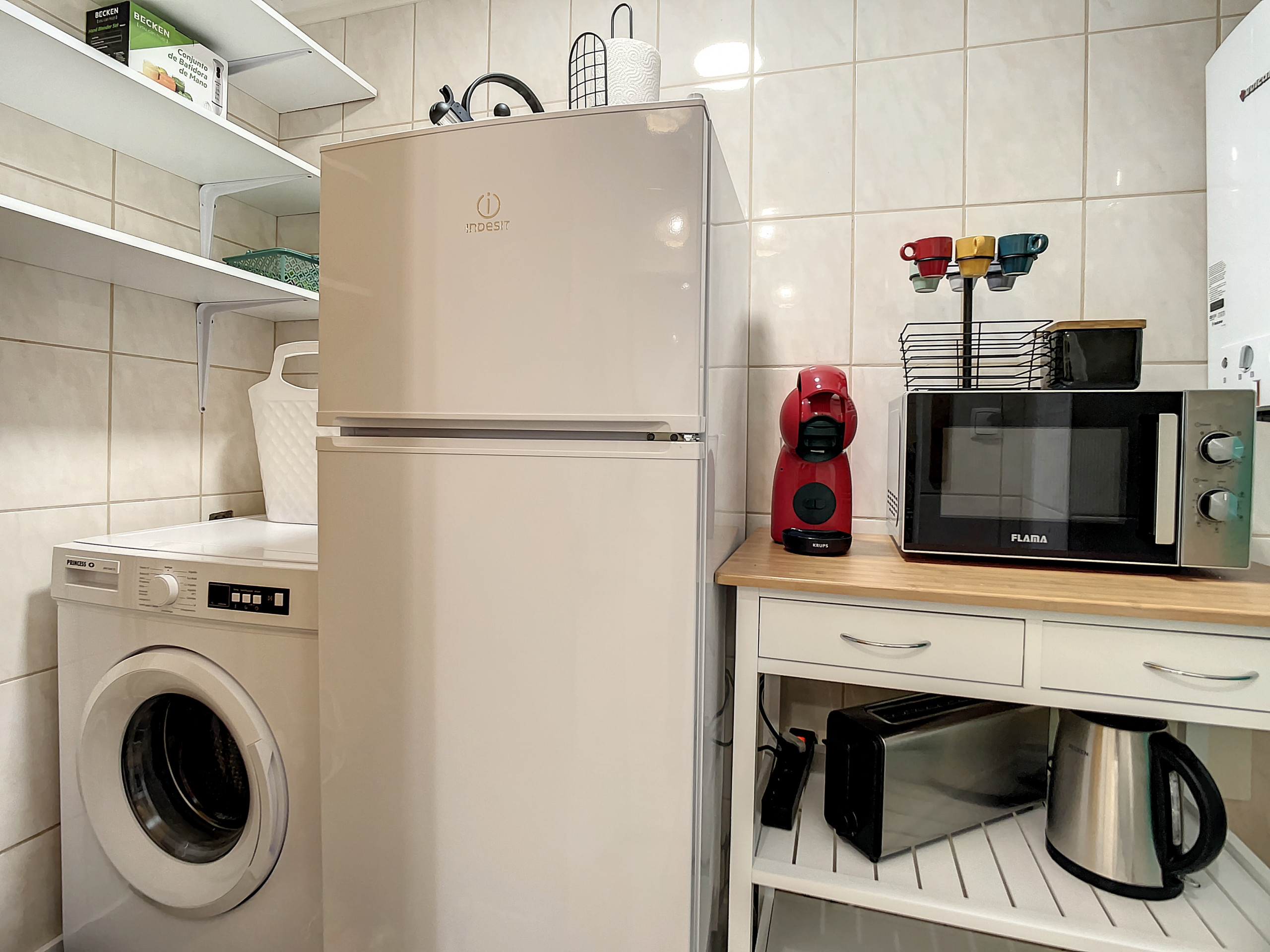 In the kitchen, you'll find everything required for an enjoyable cooking experience. From a fridge, freezer, oven, and hob to cutlery and plates, it's all at your disposal. Added conveniences like a washing machine and hairdryer enhance your stay.