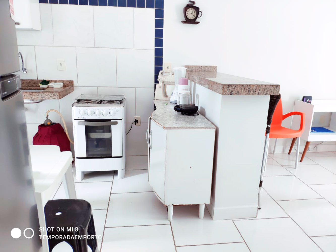 - Cozinha americana equipada com tudo que você mais precisa para suas refeições, incluindo fogão, geladeira, liquidificador e torradeira