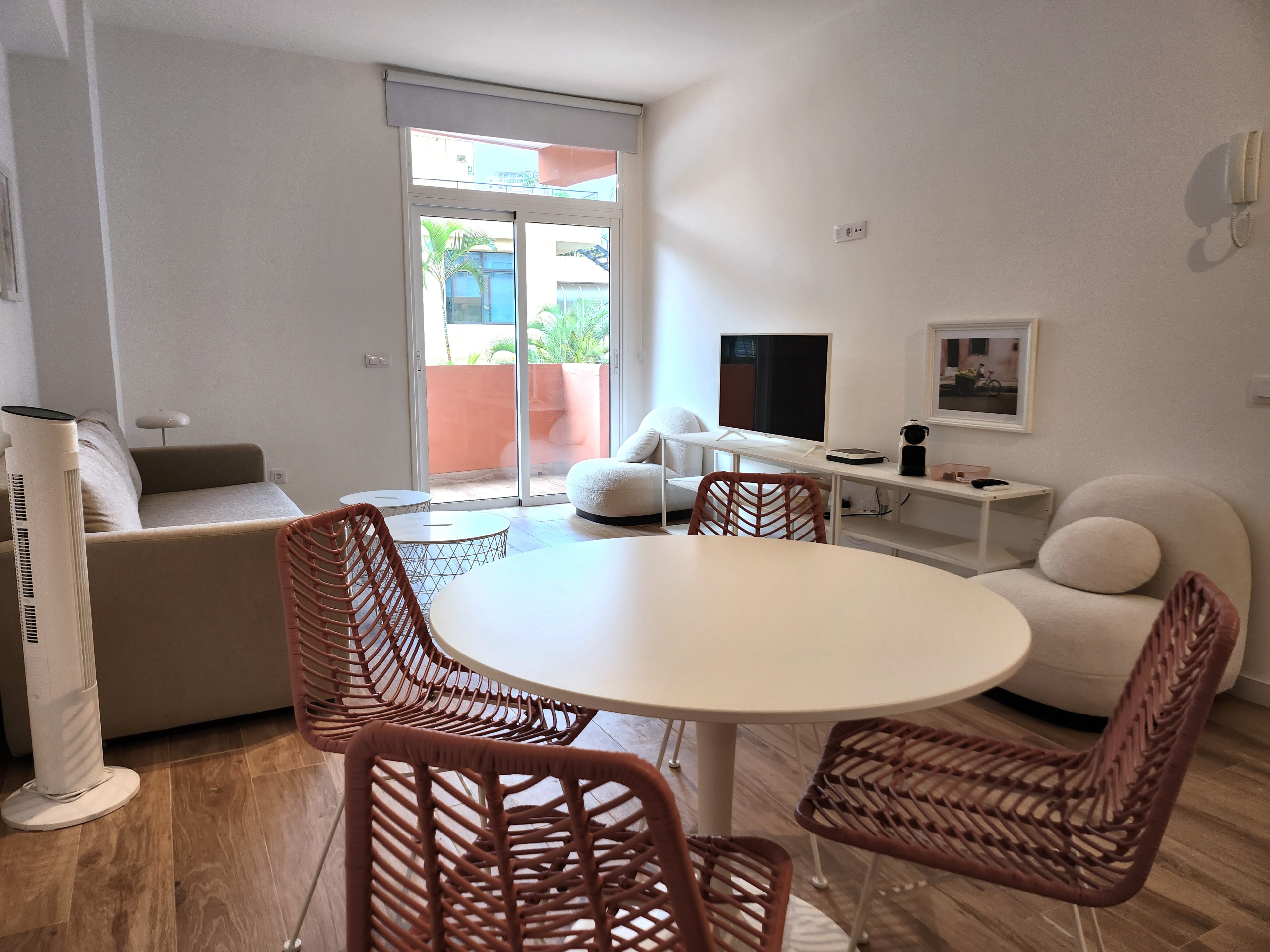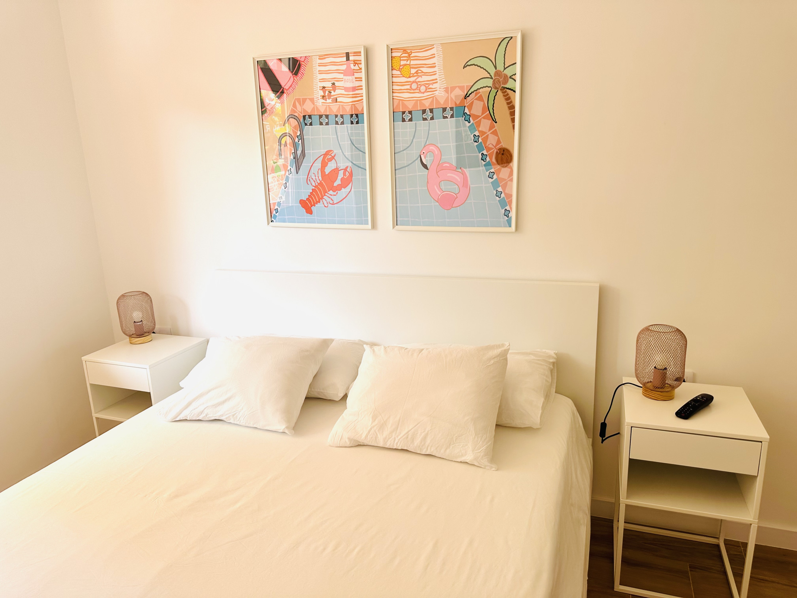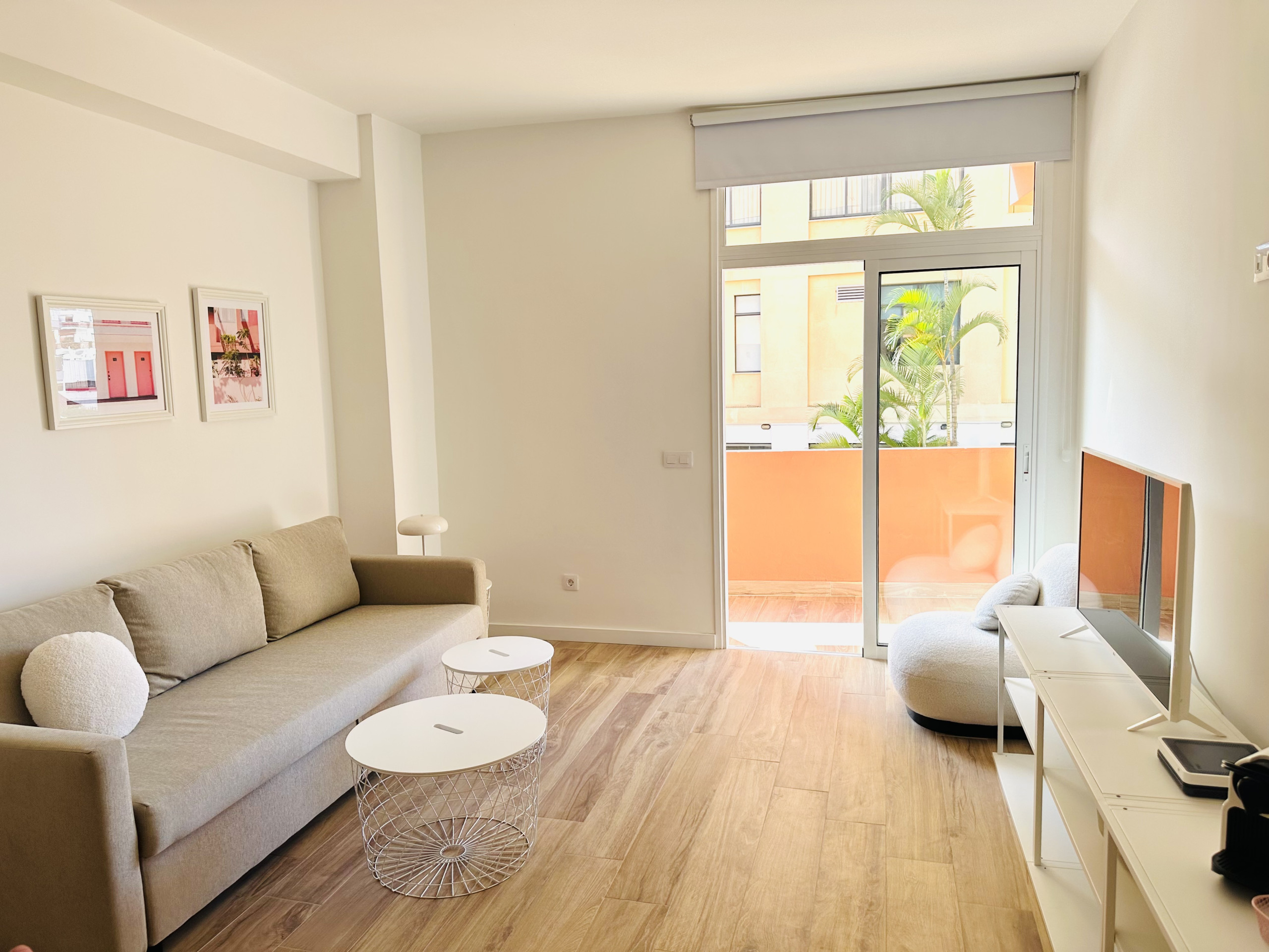 It has a lift, 8 m² terrace, washing machine, internet access (wifi), hairdryer, balcony, air conditioning, communal swimming pool and Netflix account. In addition, there is a paid parking in a shopping centre opposite and in the building itself there are parking spaces that can be booked in advance for 7 euros per day.