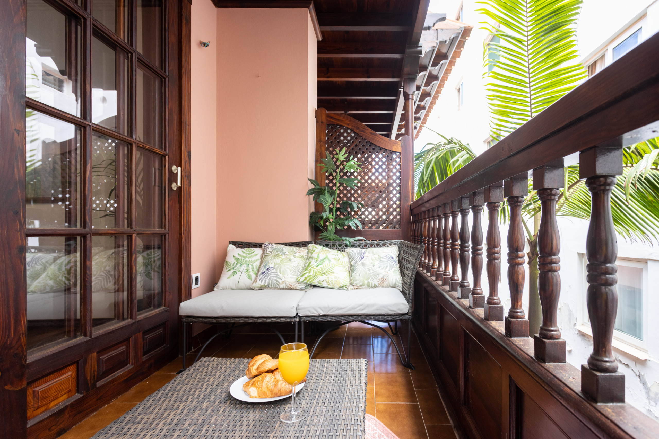 The balcony is perfect for having breakfast outdoors or enjoying a drink at sunset in a quiet and central setting.