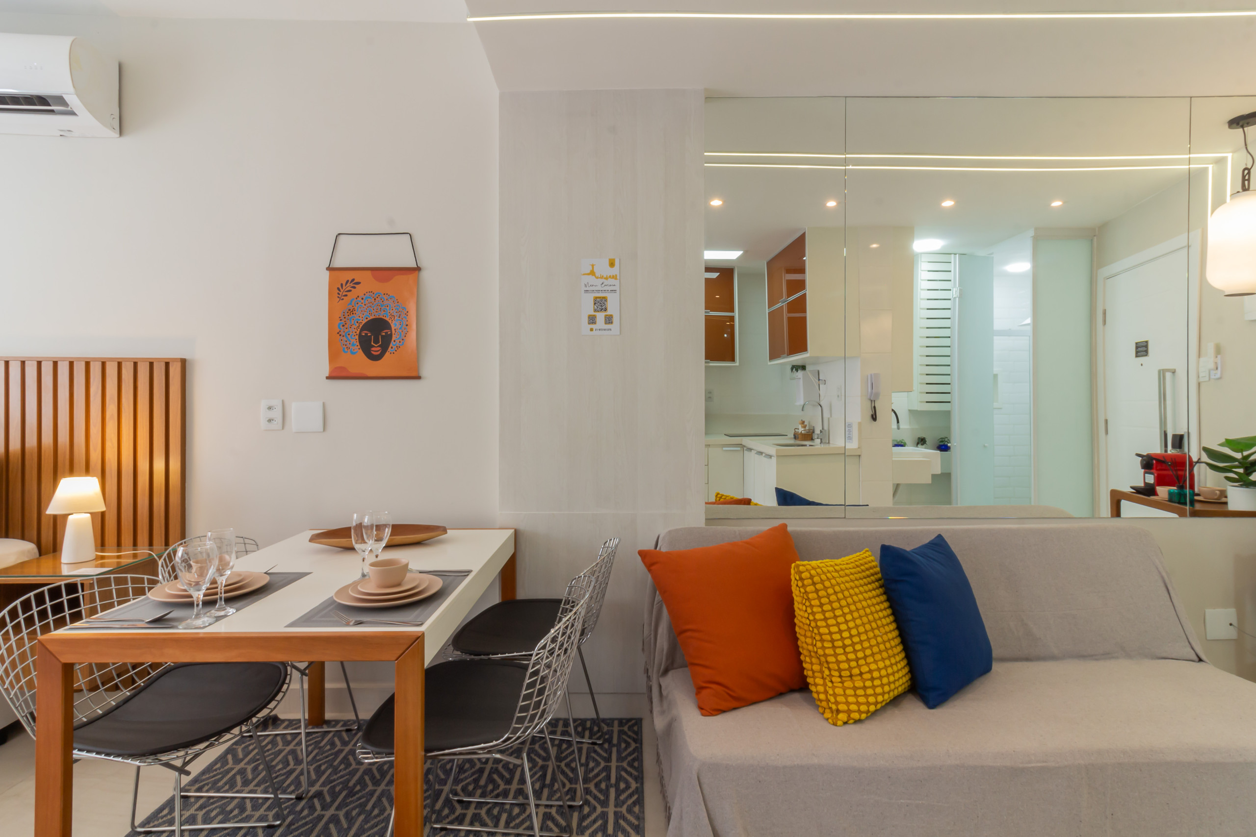 This apartment has a privileged location: it is just 5 minutes walking from Copacabana Beach, 3 minutes from the metro and 10 minutes from Rodrigo de Freitas Lagoon. Additionally, the area offers a wide variety of restaurants and bars, providing convenience and numerous leisure options around you.