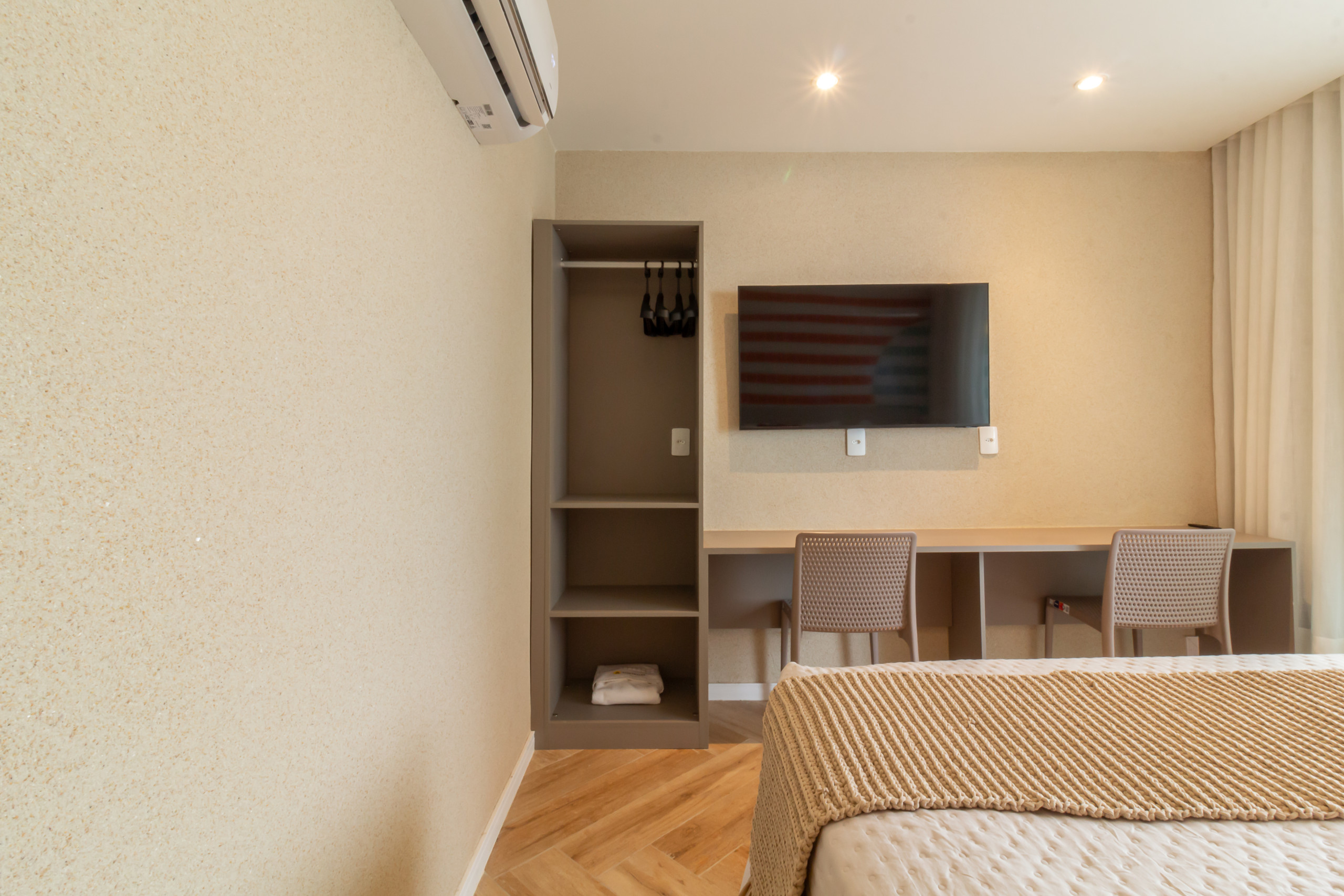 The space still offers amenities that go beyond expectations, including a coworking area, ideal for those who need to reconcile leisure and work, and a practical smart supermarket, ensuring quick access to essential items without leaving the condominium. For your convenience, there is also a 1-volume luggage room and a changing room, with shower and toilet, both available free of charge to guests, in addition to 24-hour reception. Everything was designed to provide you with a stay with maximum comfort, practicality, and convenience.