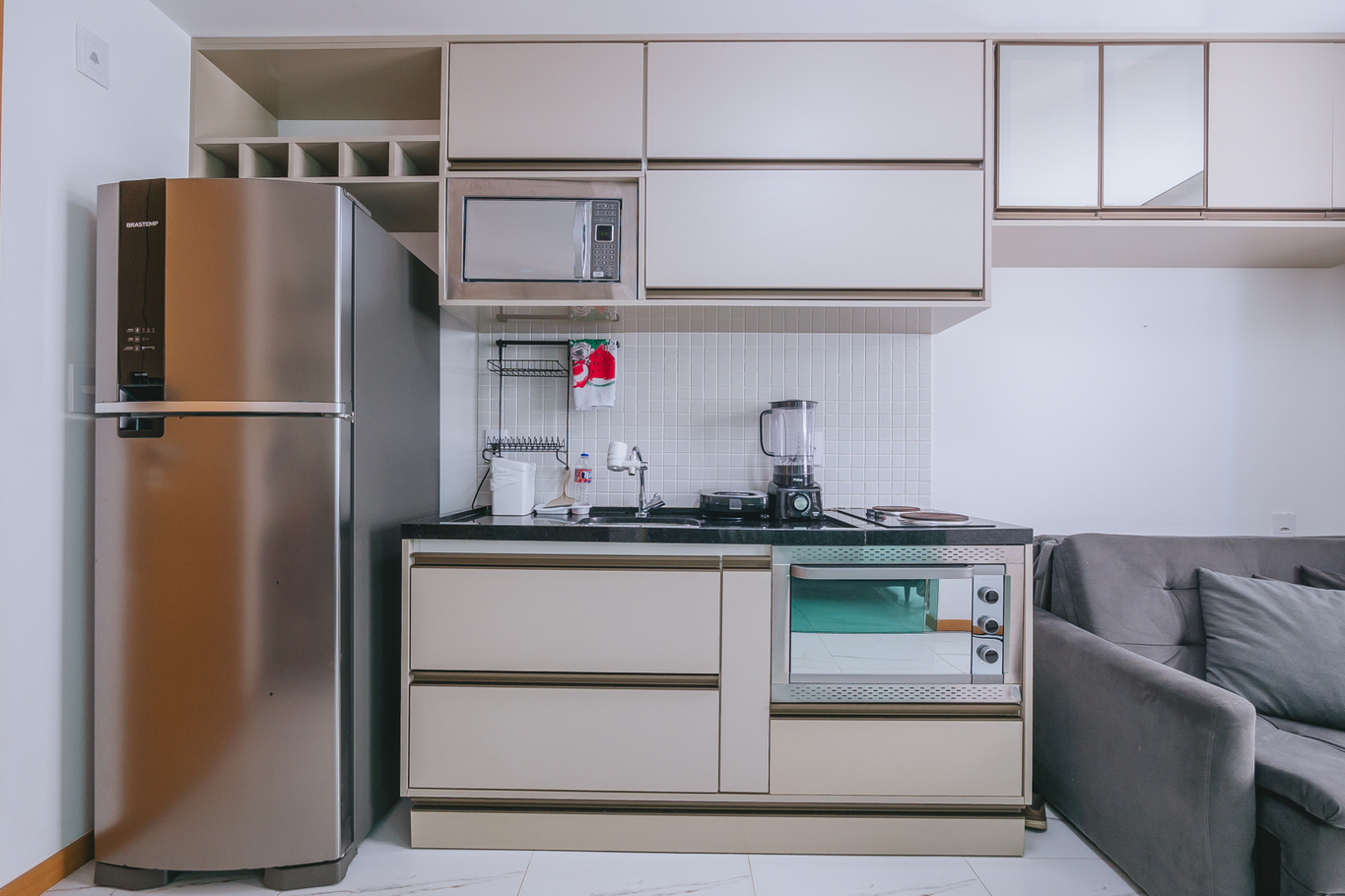In the gas independent kitchen, refrigerator, microwave, oven, freezer, dishes/cutlery, kitchen utensils, toaster and hob are provided.