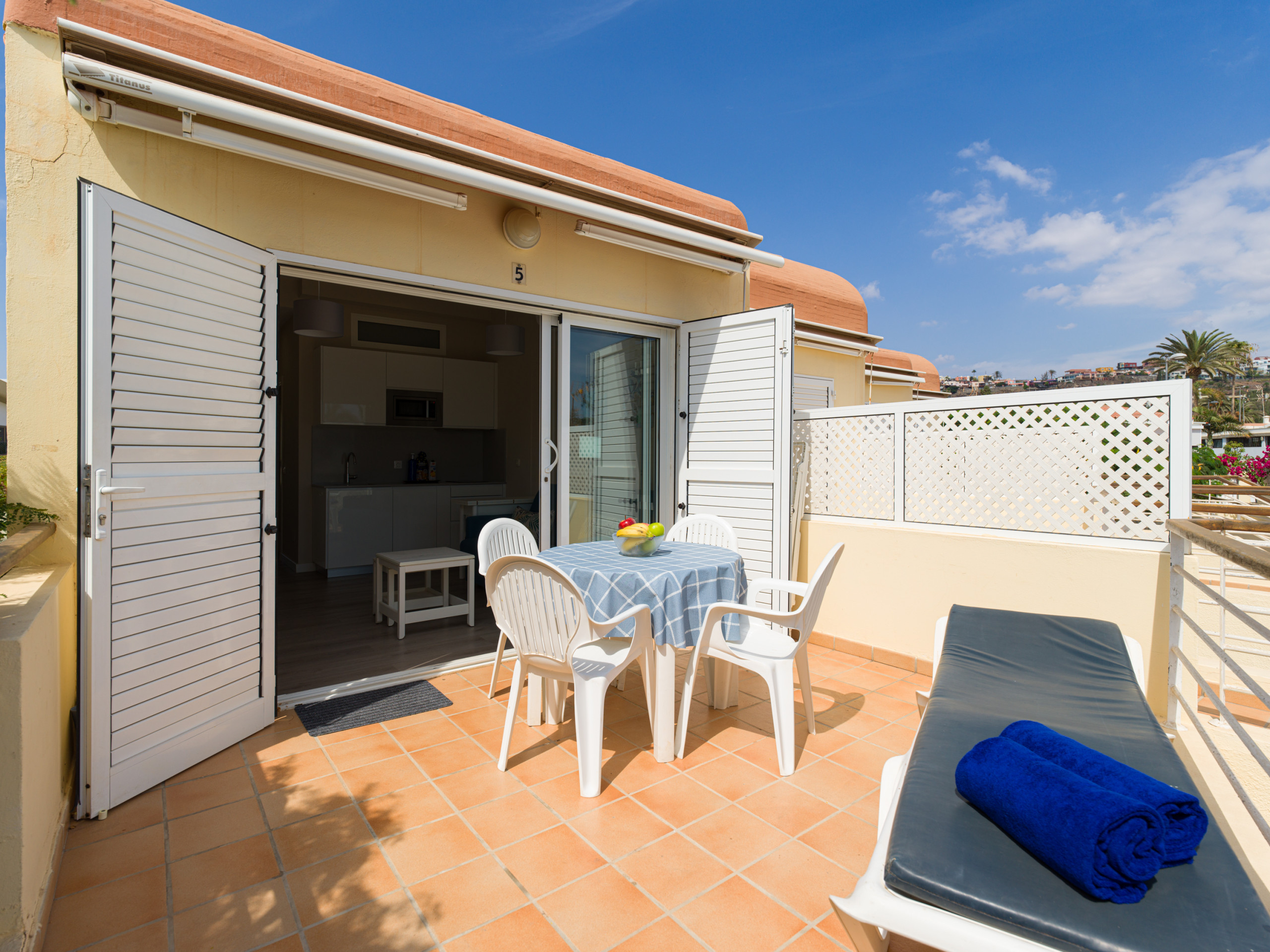 The location is wonderful, in a small complex right next to the promenade that gives direct access to the beach of San Agustin. The complex has a small swimming pool as well as garden areas. The flat has a washing machine in a common room of the complex where our guests will have full access.