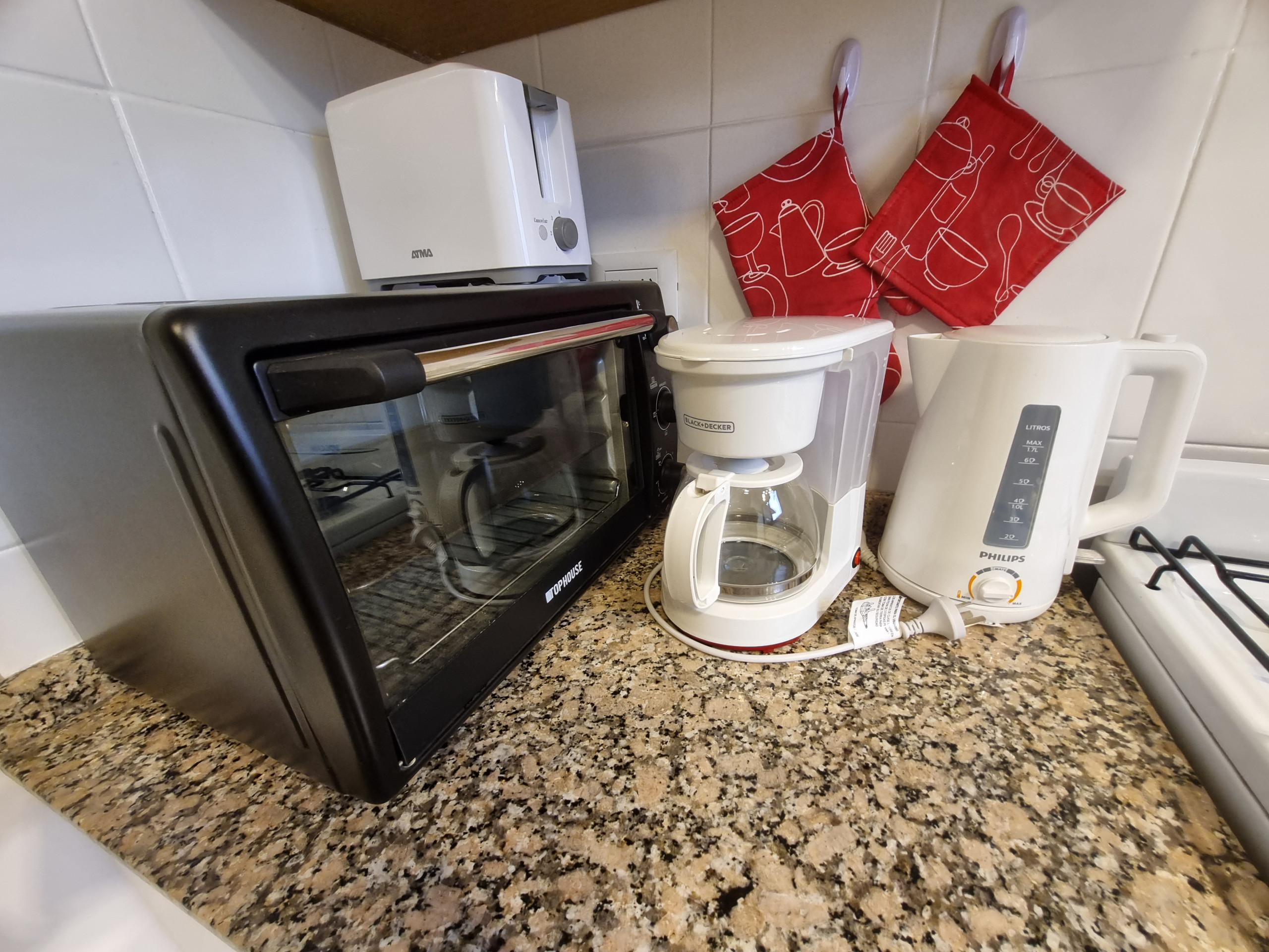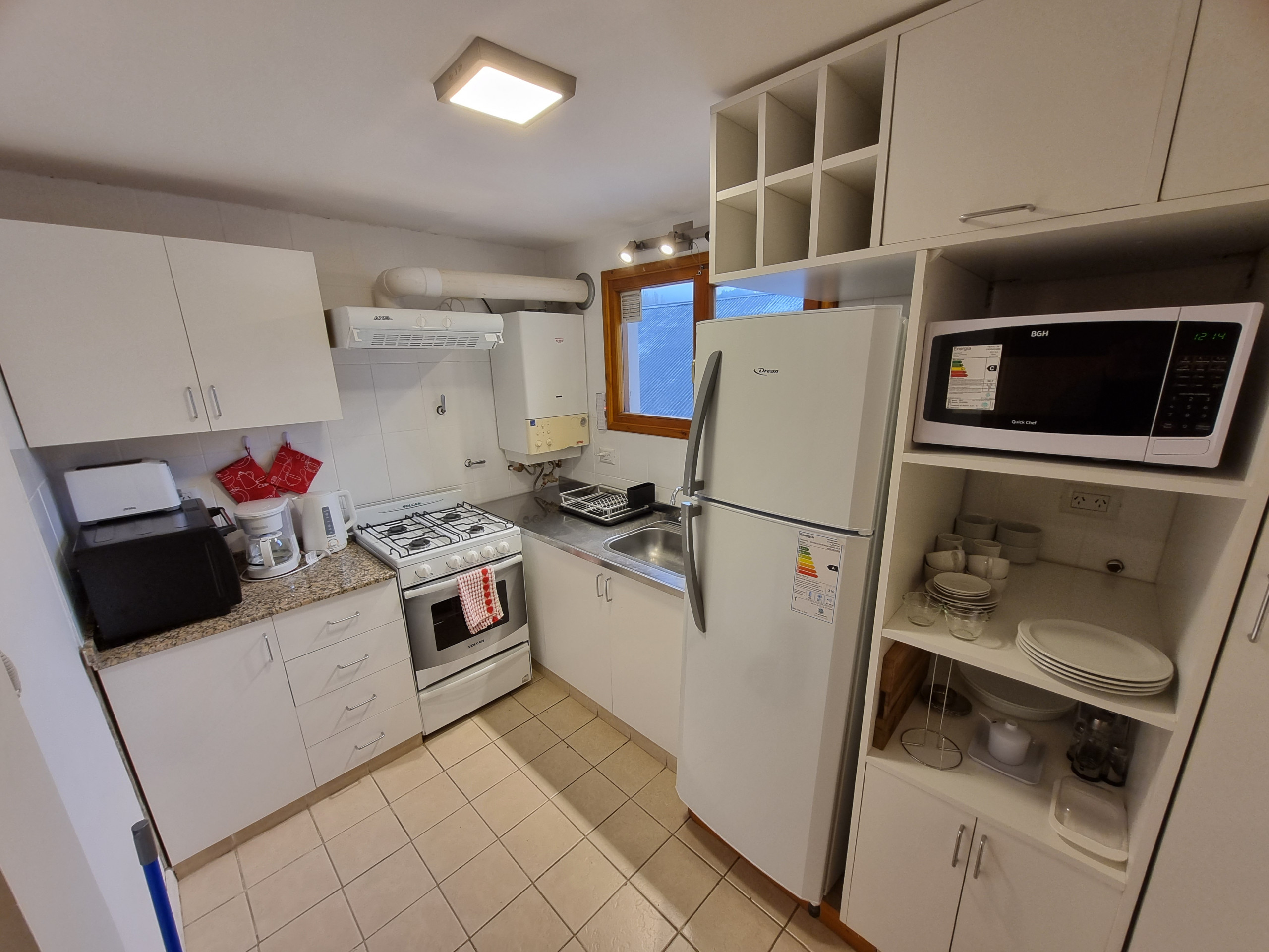 In the gas independent kitchen, refrigerator, microwave, oven, freezer, dishes/cutlery, kitchen utensils, coffee machine, toaster and kettle are provided.