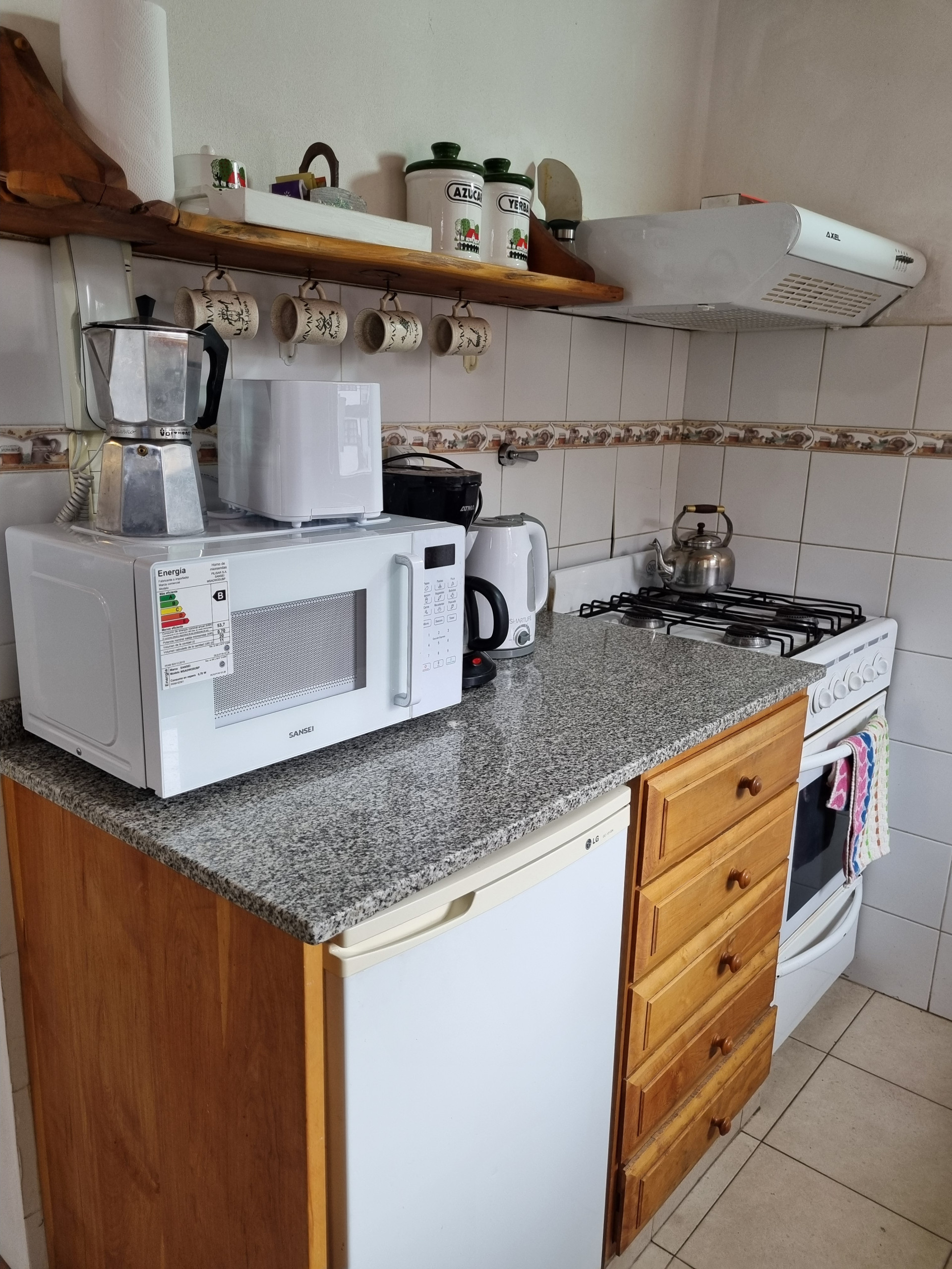 In the gas open plan kitchen, refrigerator, microwave, oven, freezer, dishes/cutlery, kitchen utensils, coffee machine, toaster and kettle are provided.
