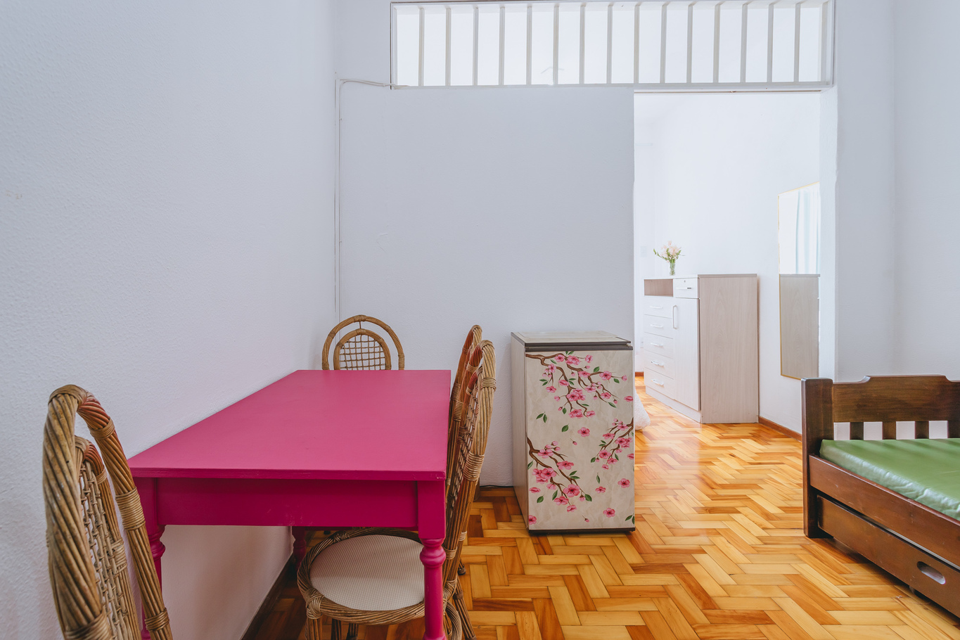 - In the living room you will find a mini-fridge and sofa bed