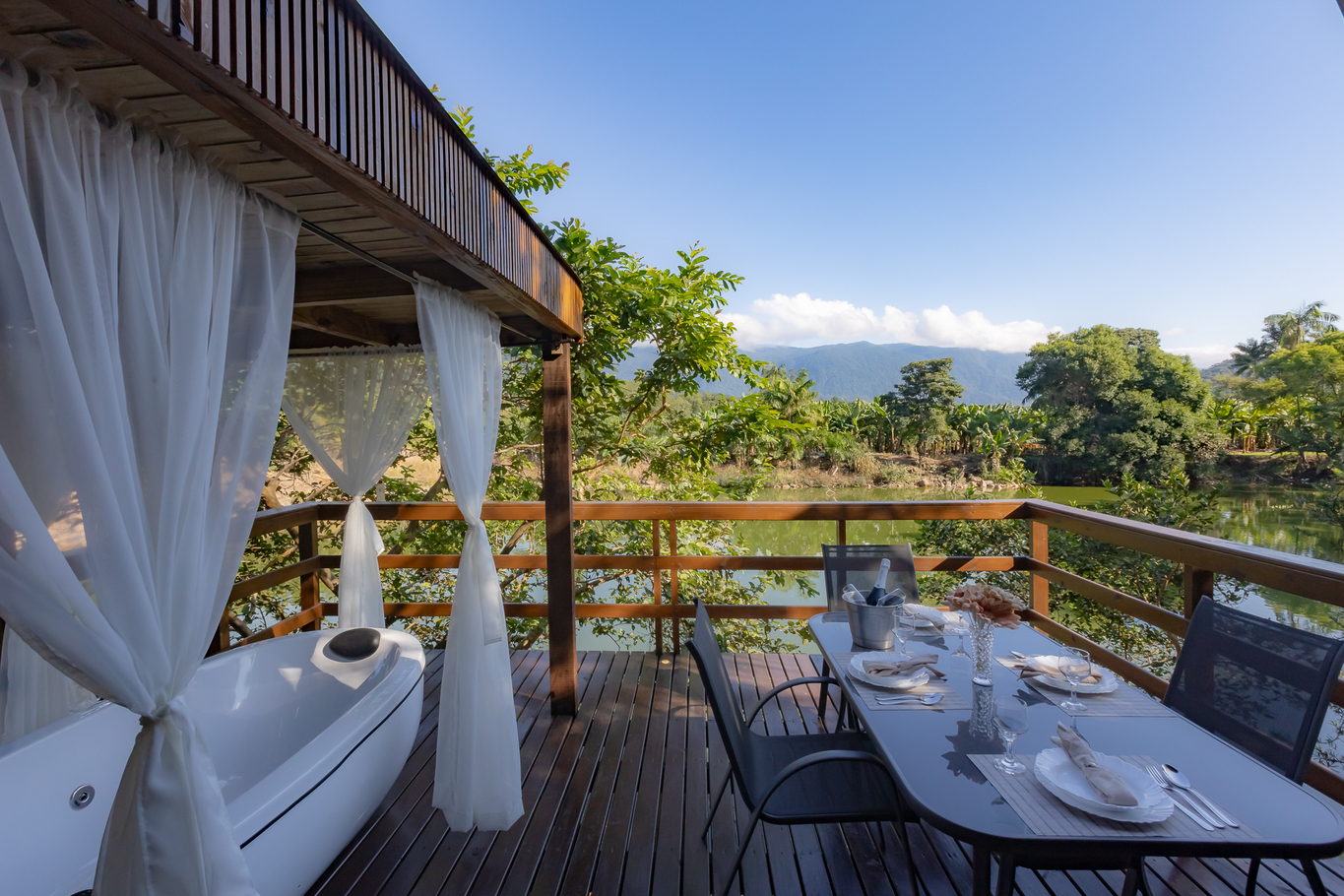 - Large deck, facing the lake equipped with jacuzzi and a great table for having coffee