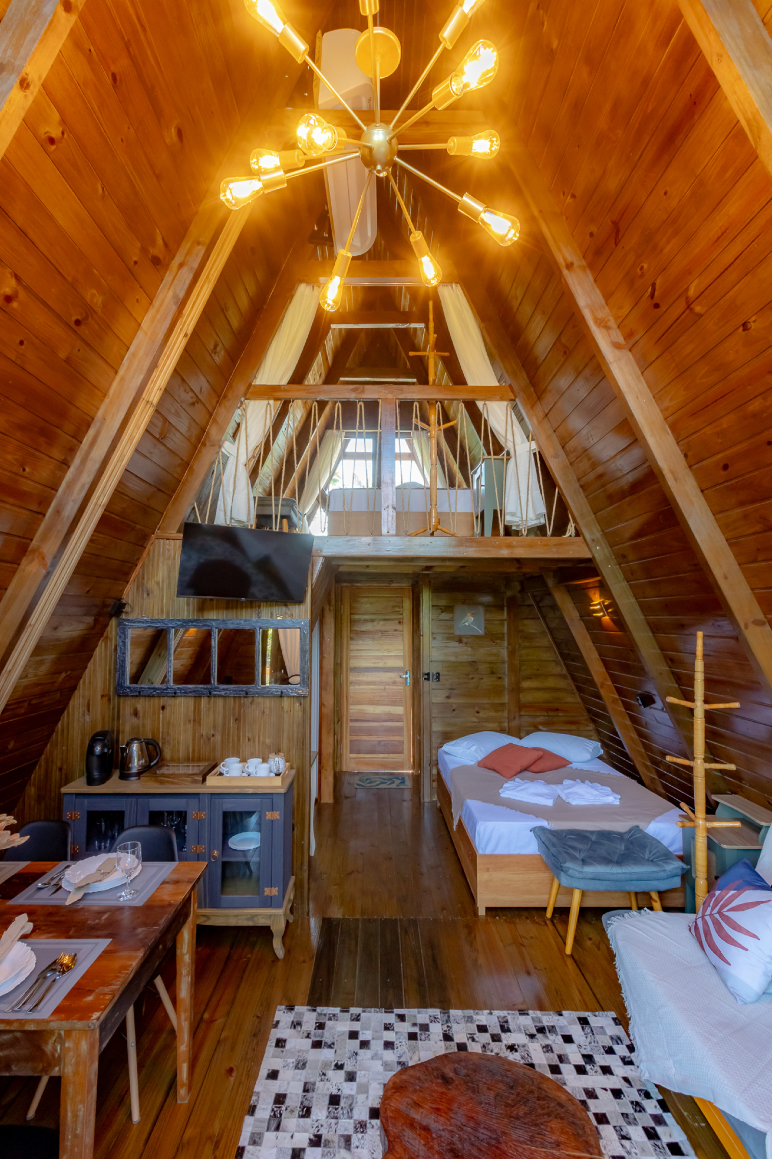 - The living room is very comfortable and you will find a coffee table, sofa and double bed