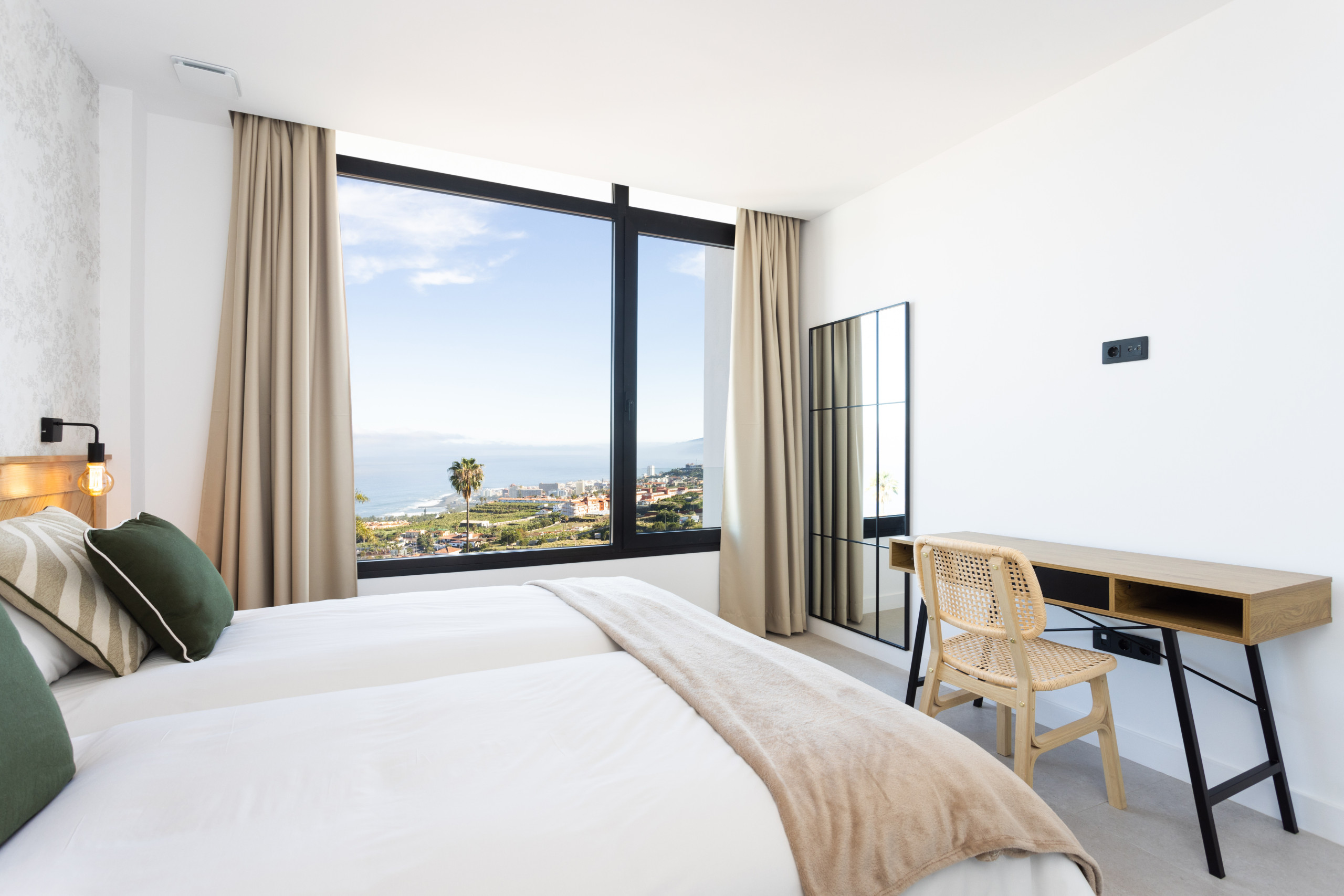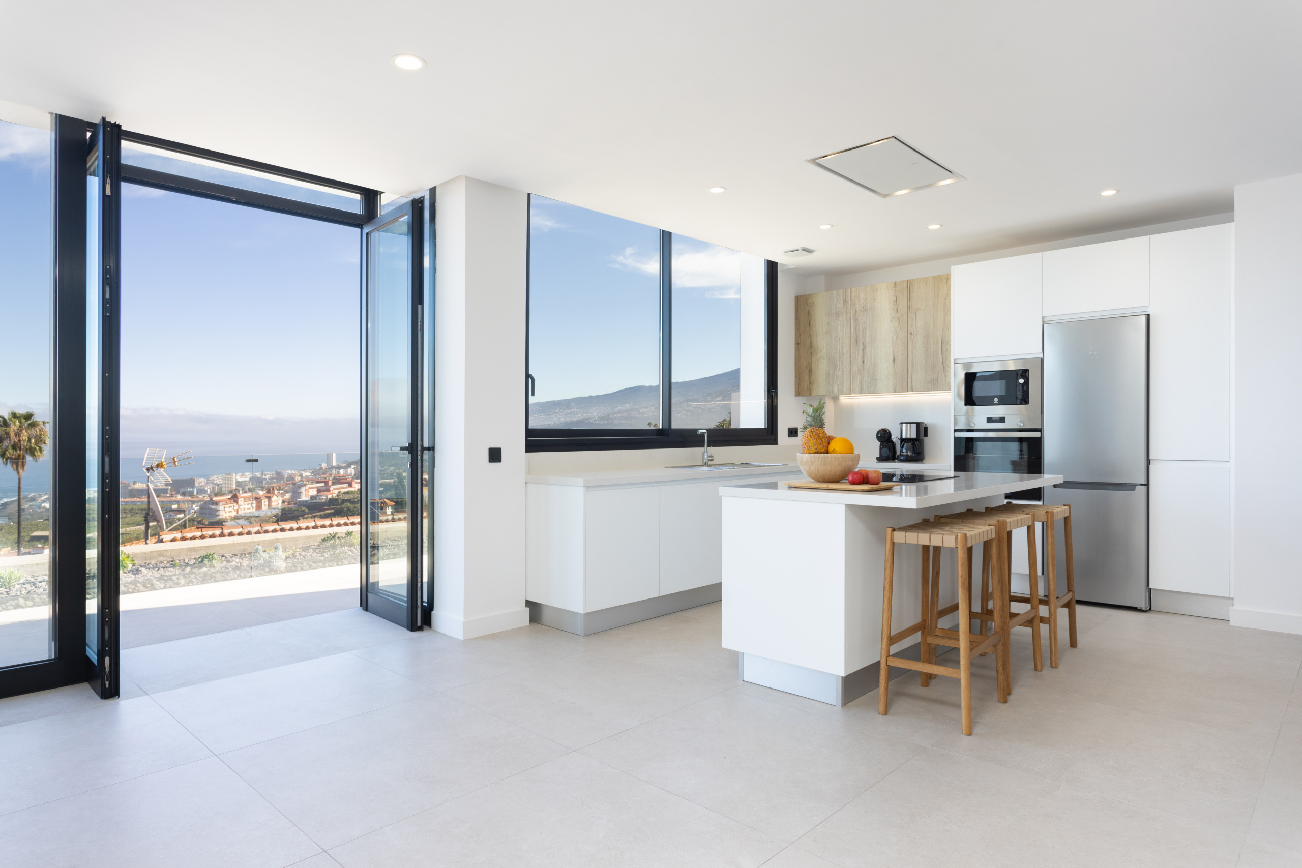 Gorvorana 3 is characterised by its luminosity and welcoming design. On the upper floor, there are five bedrooms and four bathrooms, as well as a south-facing balcony offering views of the mountain and the private pool. On the ground floor, there is a large open space with a living room, dining room and kitchen, all framed by spectacular views of Puerto de la Cruz. Also on this floor, there is an additional bedroom and a bathroom with a shower.
