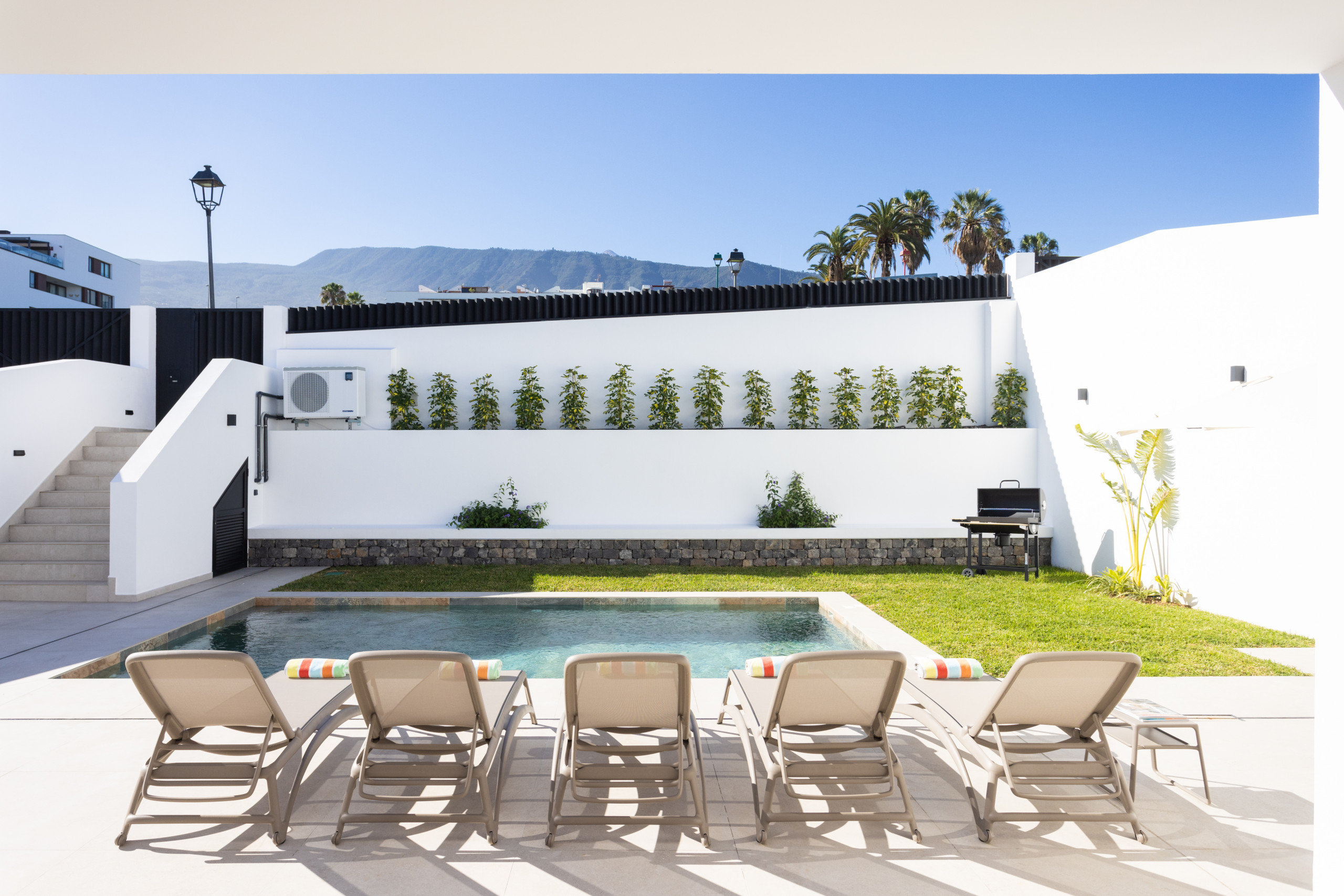 Enjoy its magnificent terrace, private garden, swimming pool and an upper balcony with mountain views. It is an ideal option for both families and groups of friends or people who work remotely, as it has high-speed internet connection. Located just five minutes by car from Puerto de la Cruz and close to all necessary services, this house is the perfect place for an unforgettable stay.