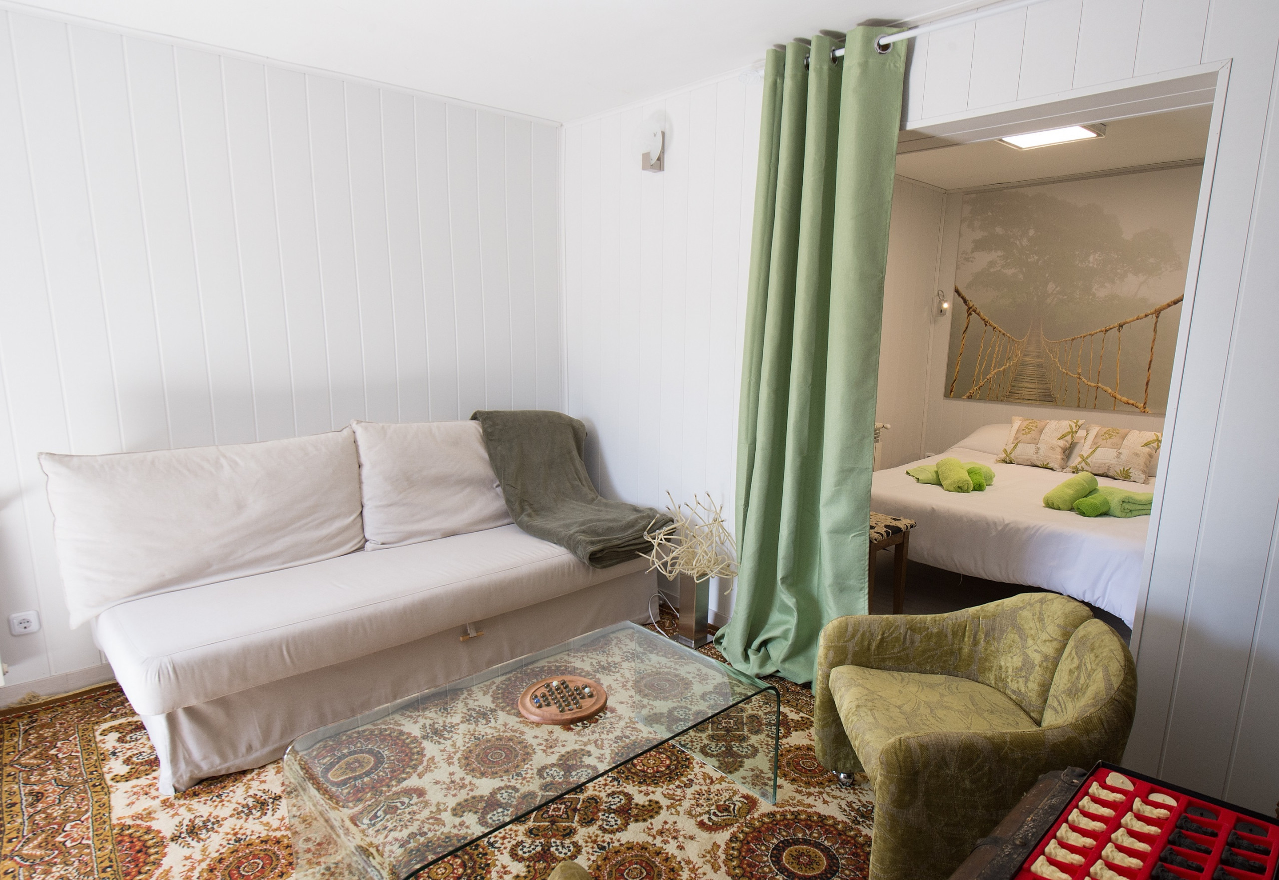 Ground floor with large living room, sofa bed, bedroom and a bathroom. Fireplace to enjoy in couple or family of a very special and exclusive atmosphere. Capacity: 4 people