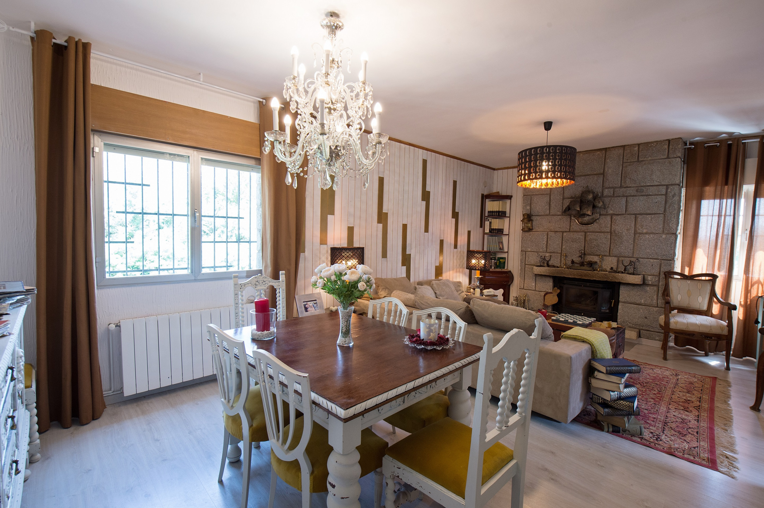 Distributed in upstairs with 4 large bedrooms, two bathrooms, large kitchen and living room with fireplace. Wonderful views around the house across the Sierra de Madrid. Capacity: 9 people