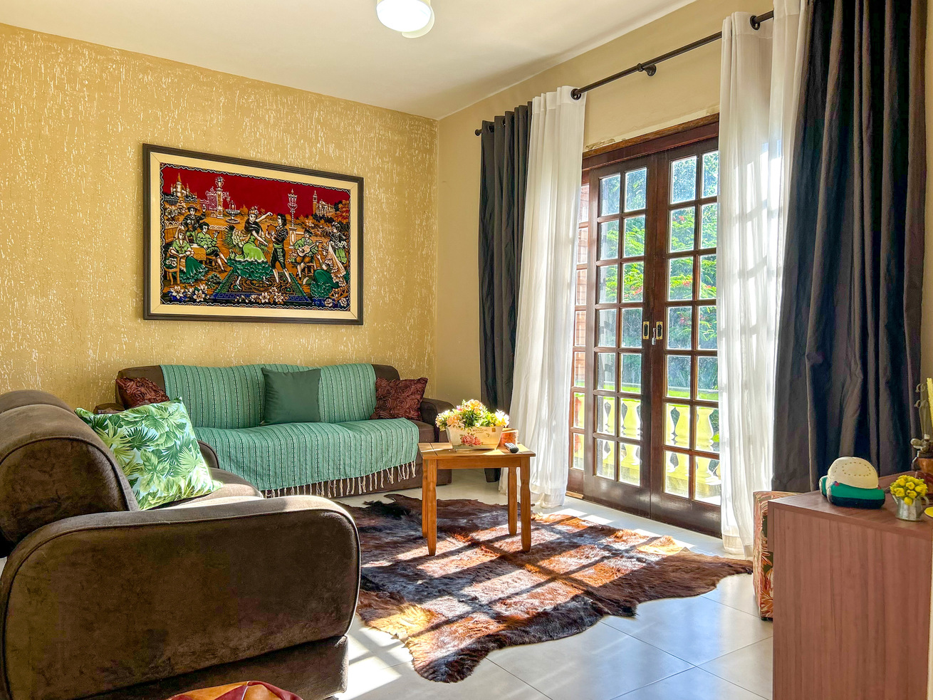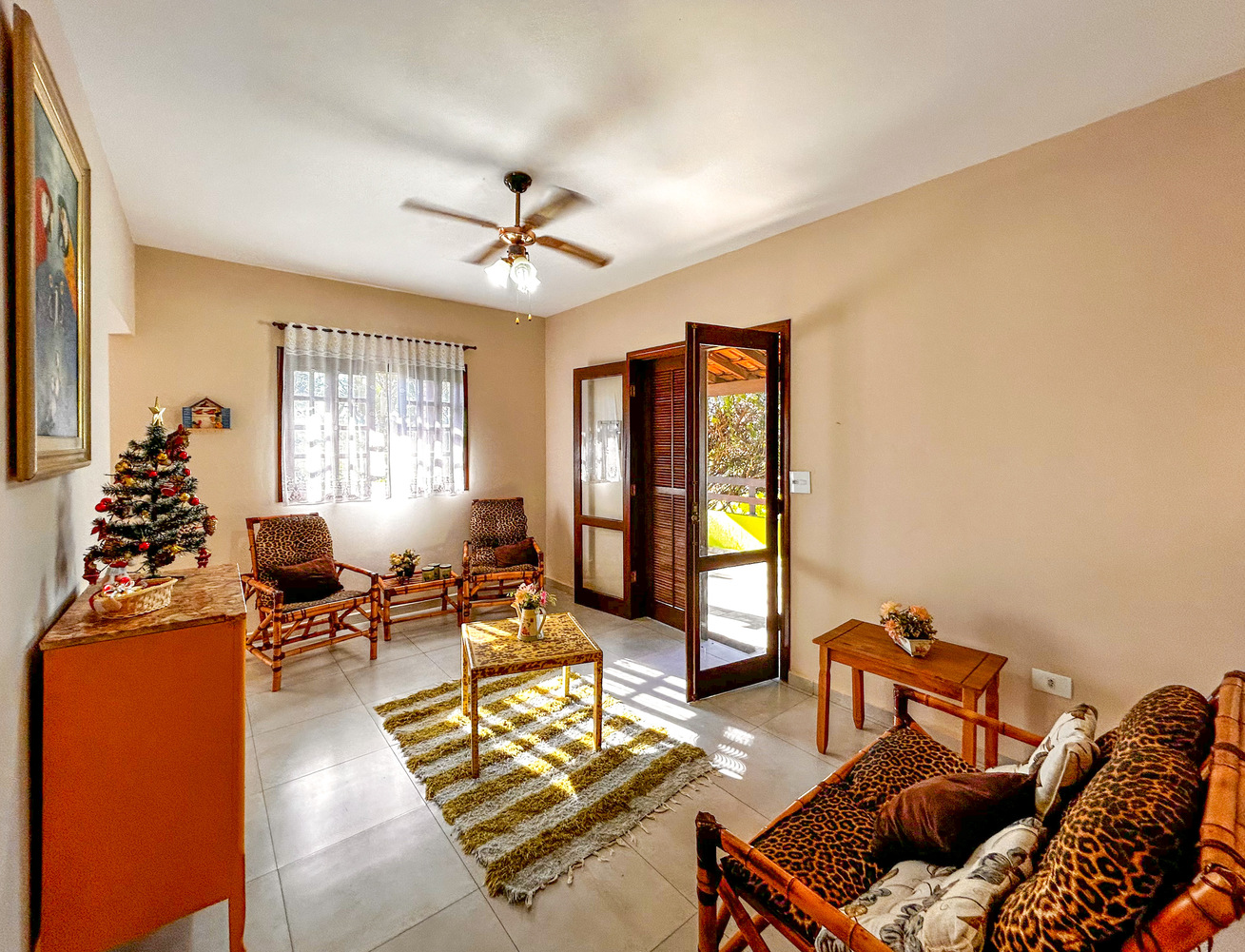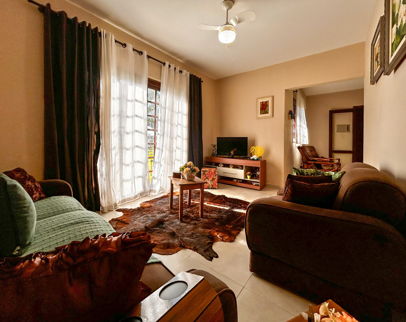 - The room is very comfortable and in it you will find a coffee table, armchair, sofa, TV, and ceiling fan