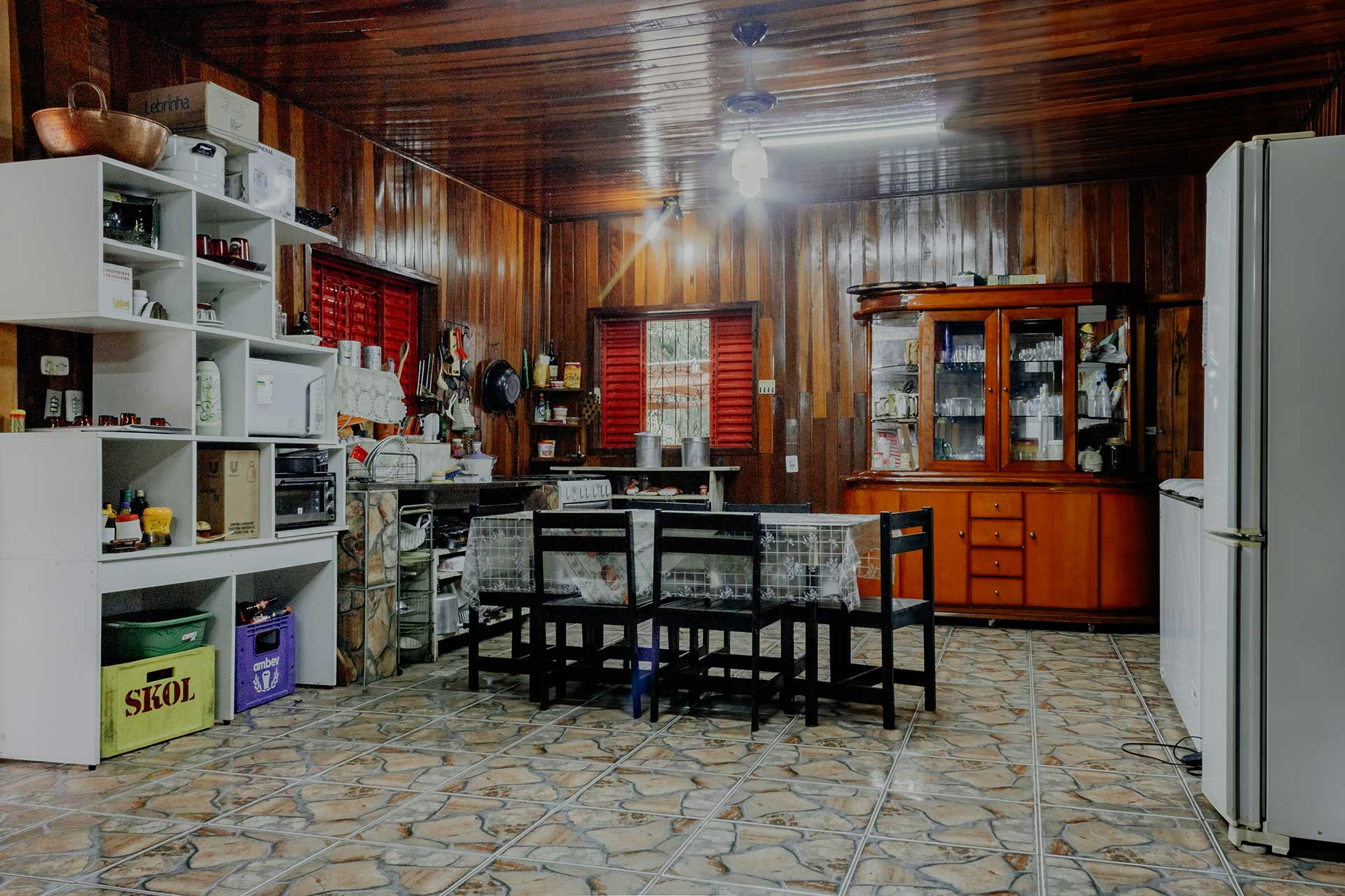 - Altamente equipada, a cozinha possui diversos utensílios necessários para preparar deliciosos pratos, incluindo freezer, fogão, forno, geladeira, liquidificador e micro-ondas