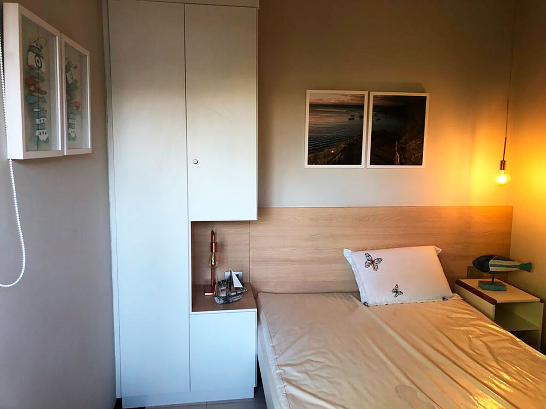 - Quartos com armário e ventilador de teto
