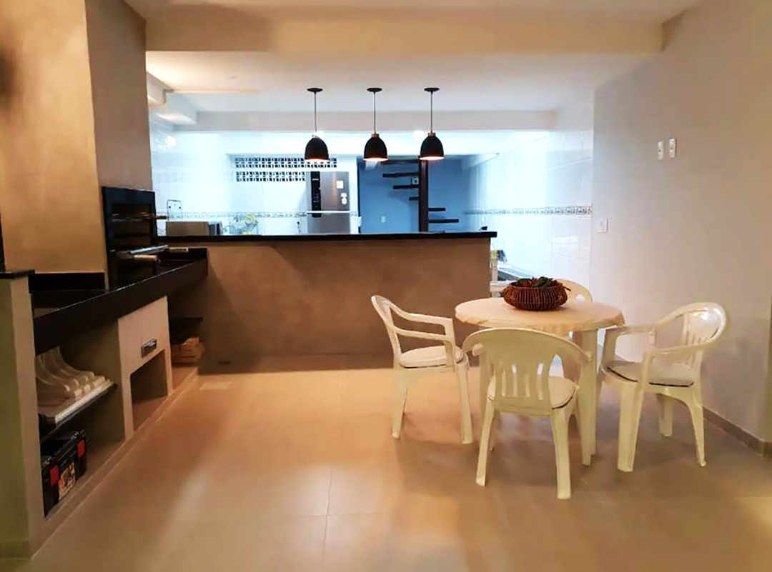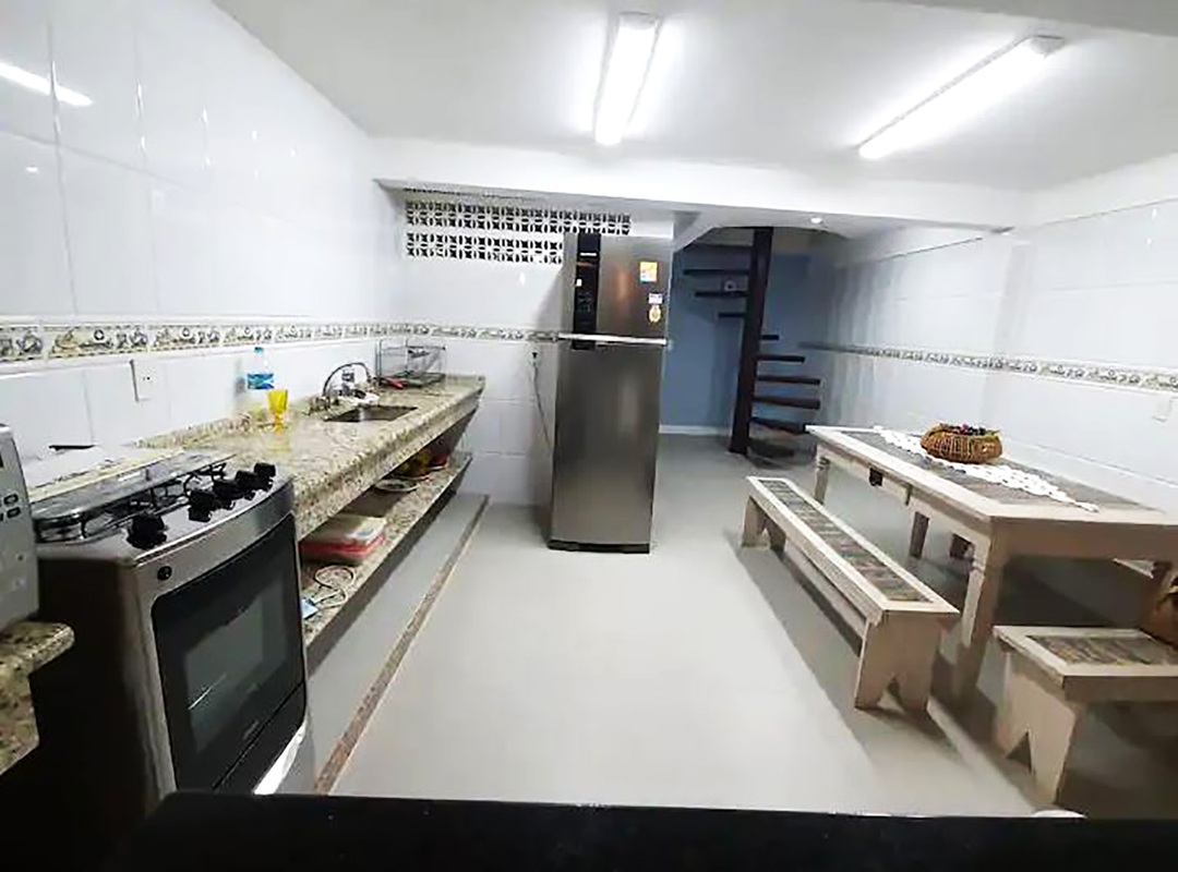 Na hora de preparar as refeições, você terá disponível todos os itens necessários, como fogão, geladeira, liquidificador, micro-ondas e torradeira. Além de copos, pratos, talheres, panelas, panos de prato, coador, garrafa térmica, porta-copos, lixeira, potes plásticos e tábuas de corte. Além de um excelente balcão e uma grande mesa com cadeiras.