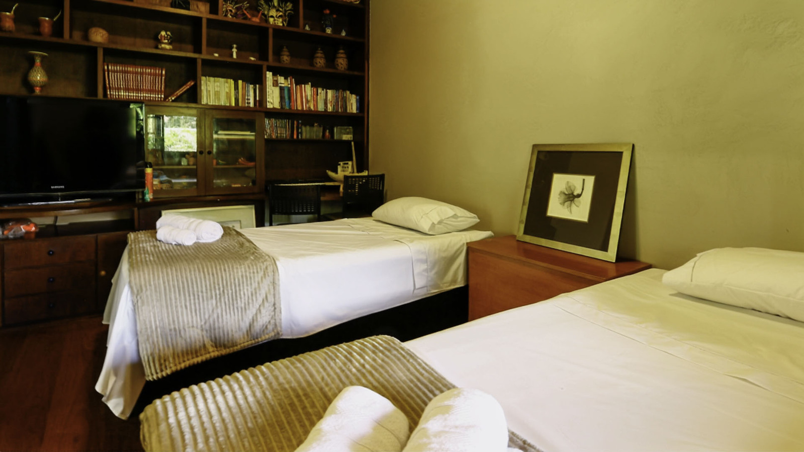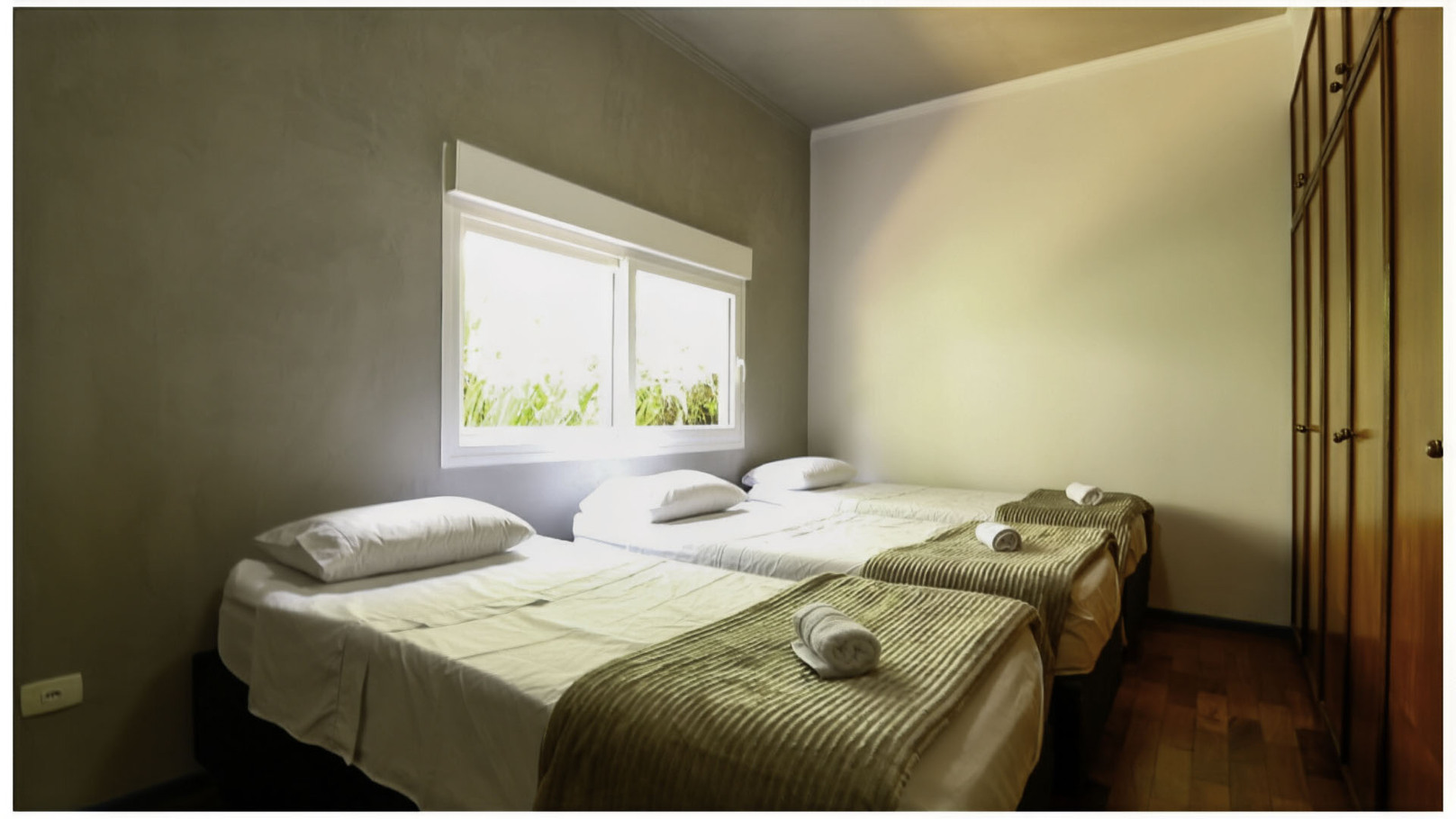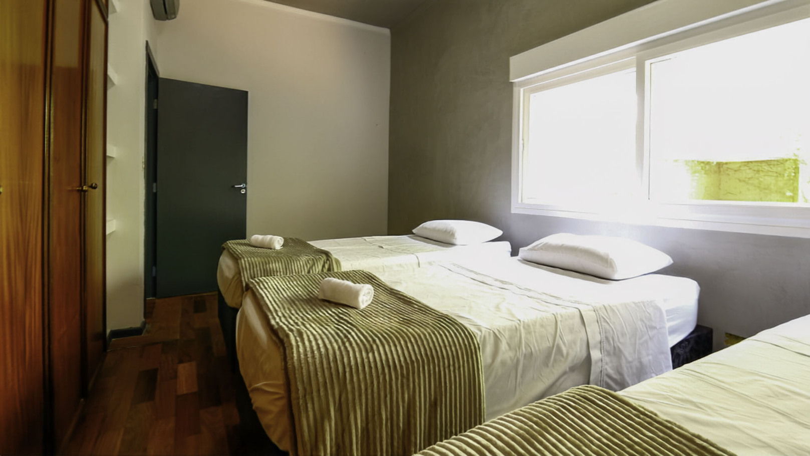 - Room 3 has 2 single beds