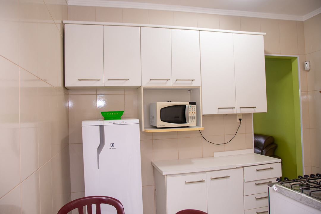 - A cozinha oferece diversos utensílios necessários para preparar ótimos pratos, incluindo fogão, forno, geladeira, liquidificador, micro-ondas, torradeira, filtro de água de garrafão, balcão e mesa