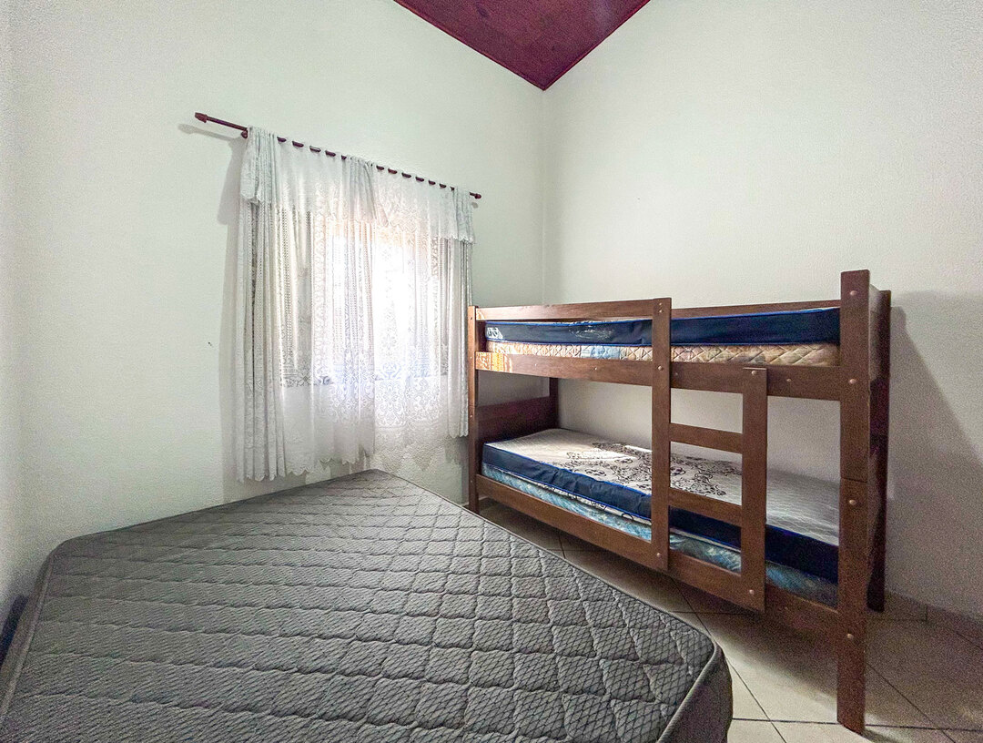 The house in Bertioga has 2 bedrooms and has capacity for 8 people.