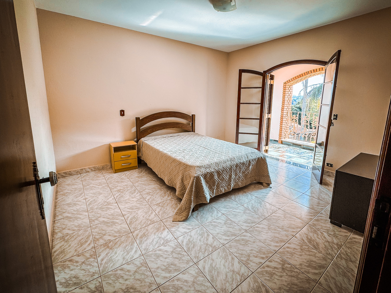 The house in Bragança Paulista has 3 bedrooms and has capacity for 15 people.