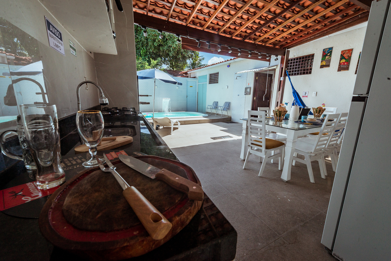 Relax in a spacious single-storey house, perfect for gathering family and friends in Cabedelo. With a private pool, gourmet area with barbecue, complete kitchen and hammock, the space was designed to offer comfort and leisure. There are 4 suites with air conditioning, Smart TV, Wi-Fi and bed and bath linen included. Pet friendly, the house accommodates up to 10 guests with practicality, safety and parking spaces. Book now and live unforgettable moments!