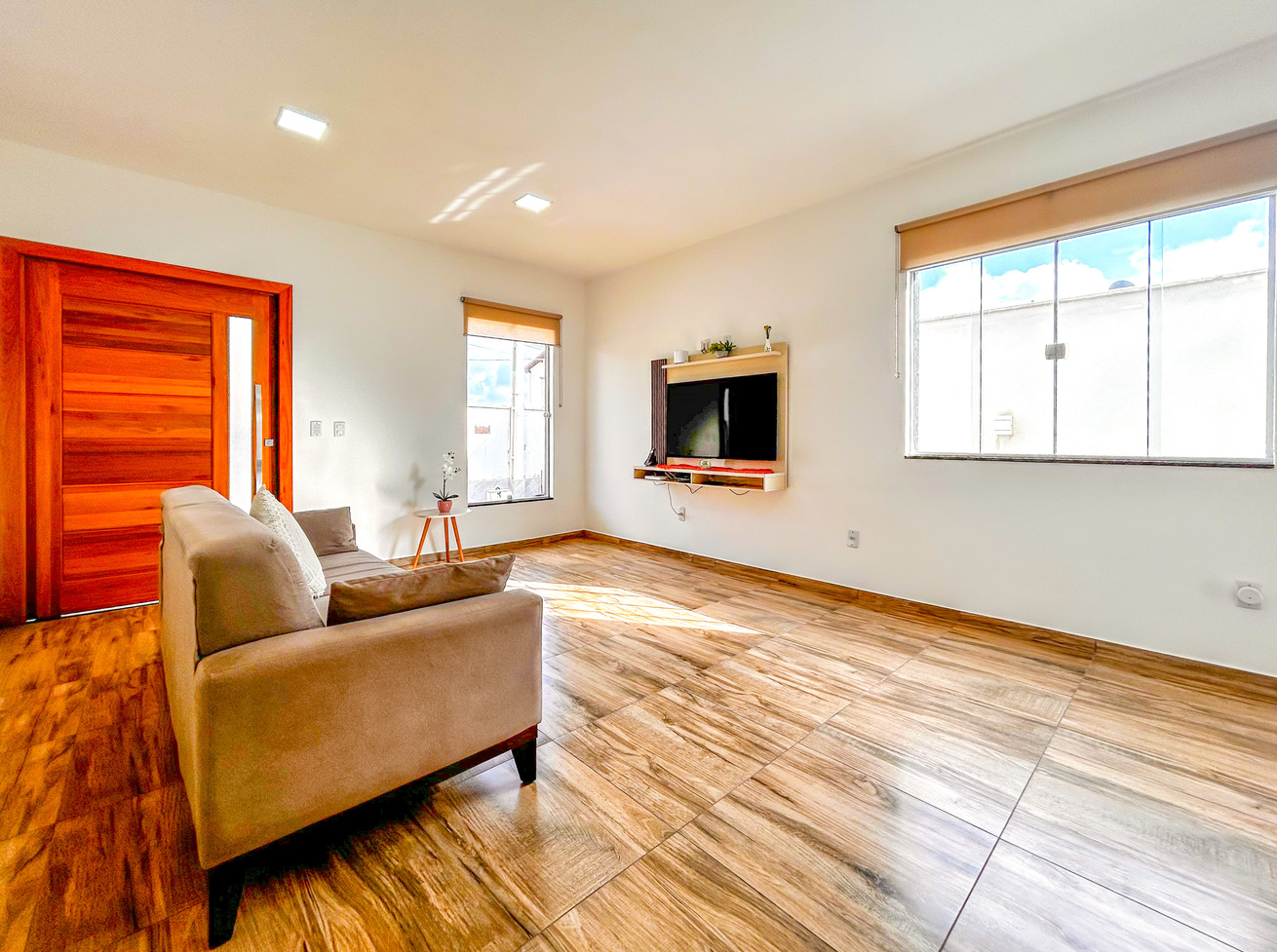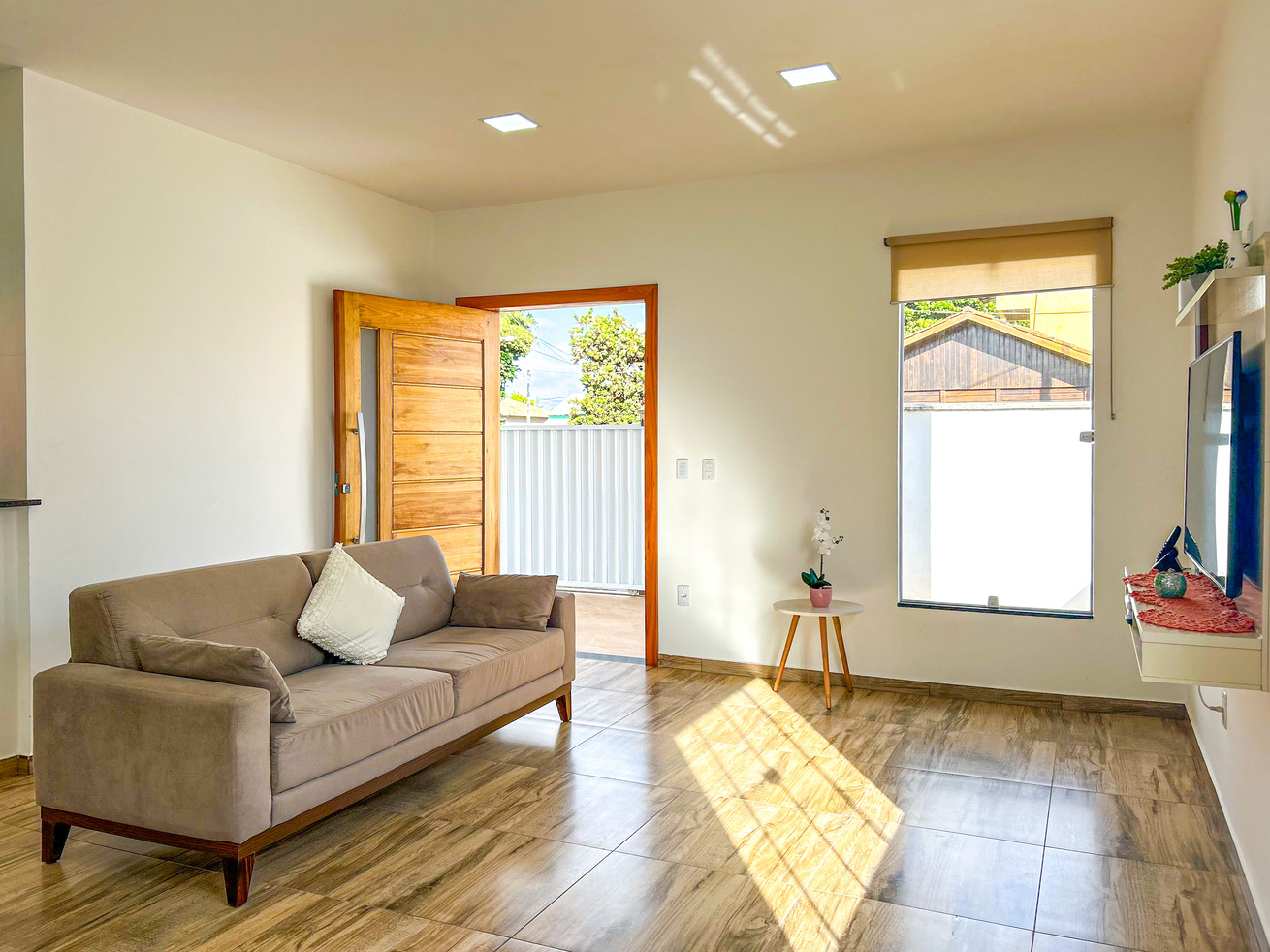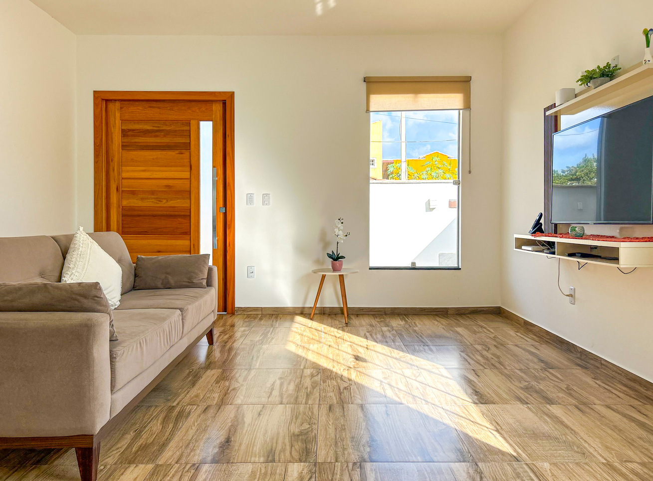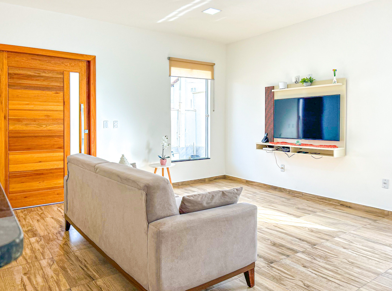 - In the living room you will find sound system, sofa and Cable Smart TV