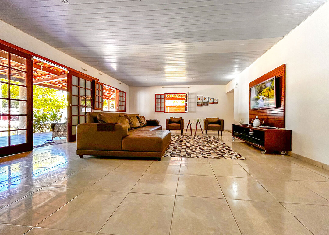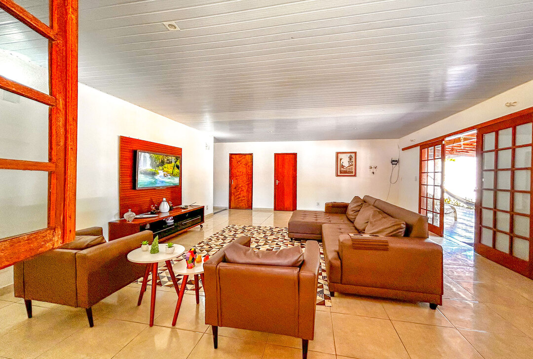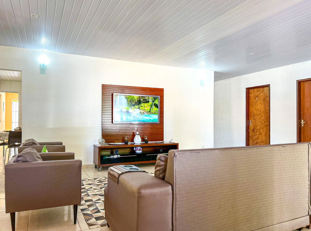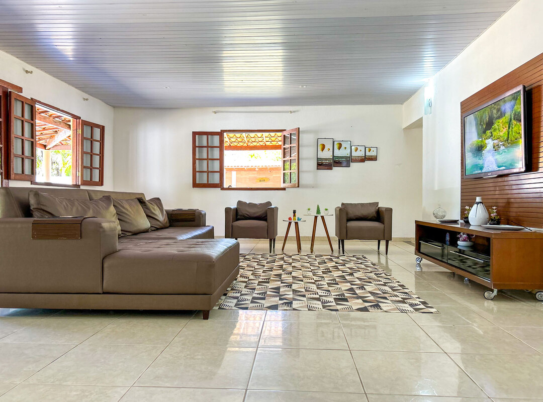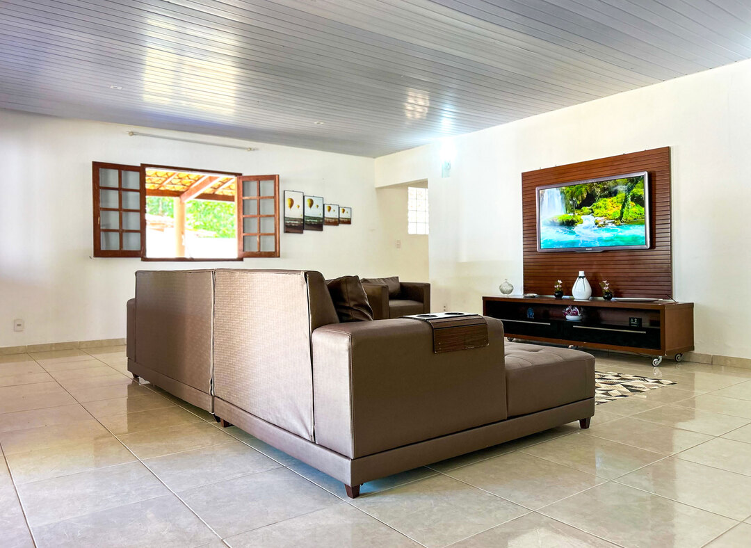 The house in Camaçari has 4 bedrooms and has capacity for 14 people.