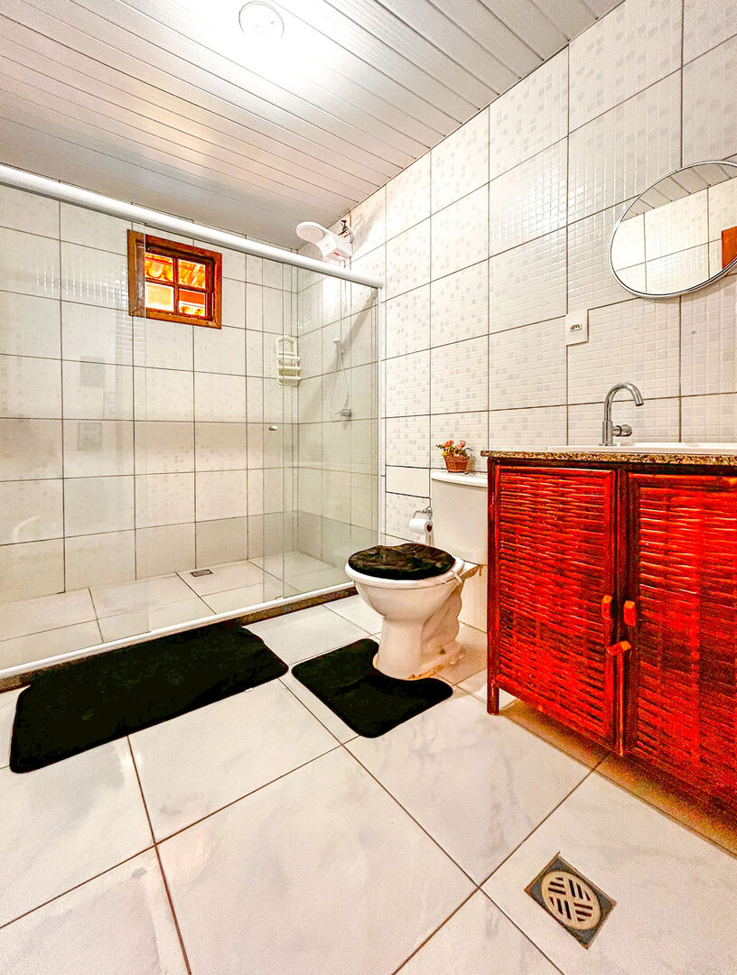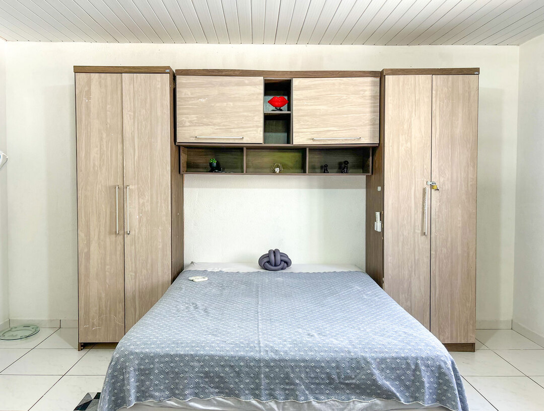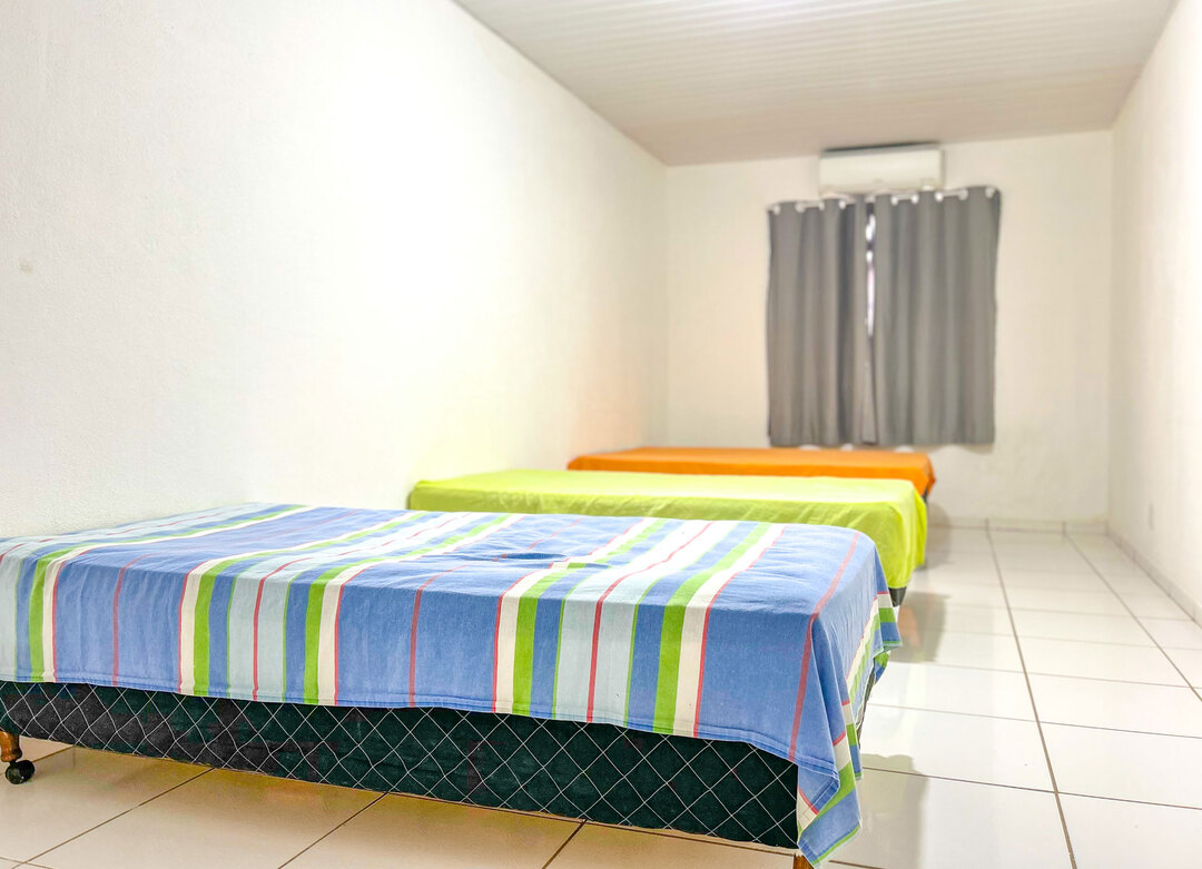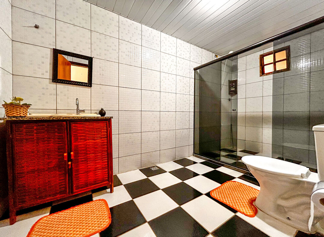 The house in Camaçari has 4 bedrooms and has capacity for 14 people.