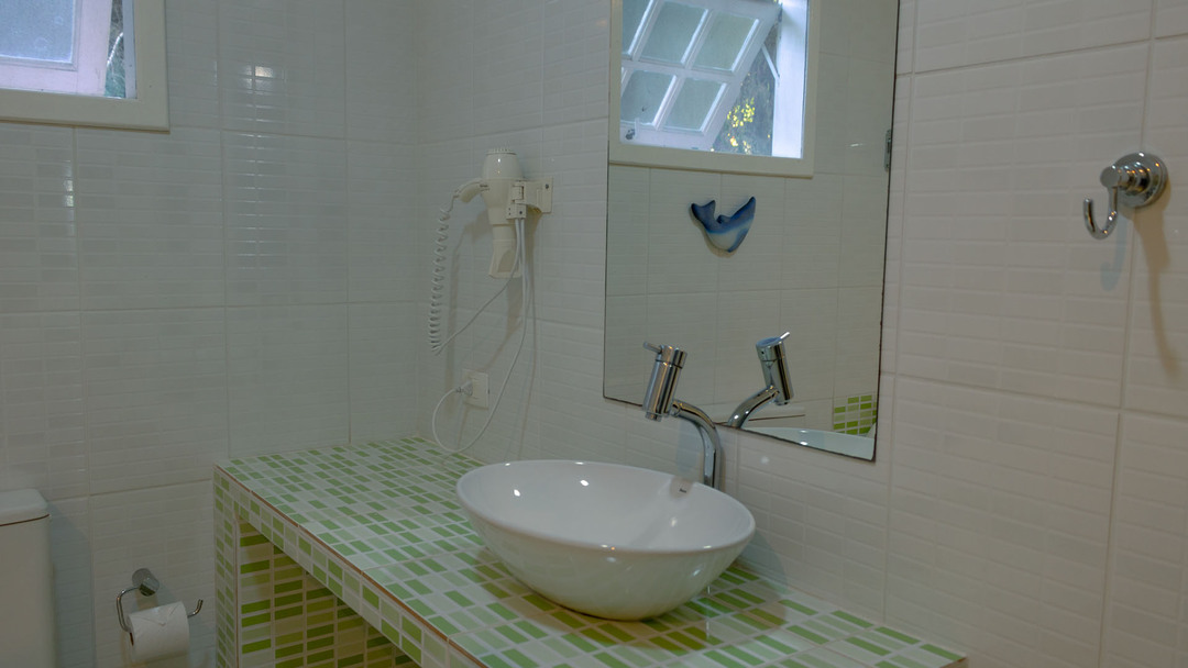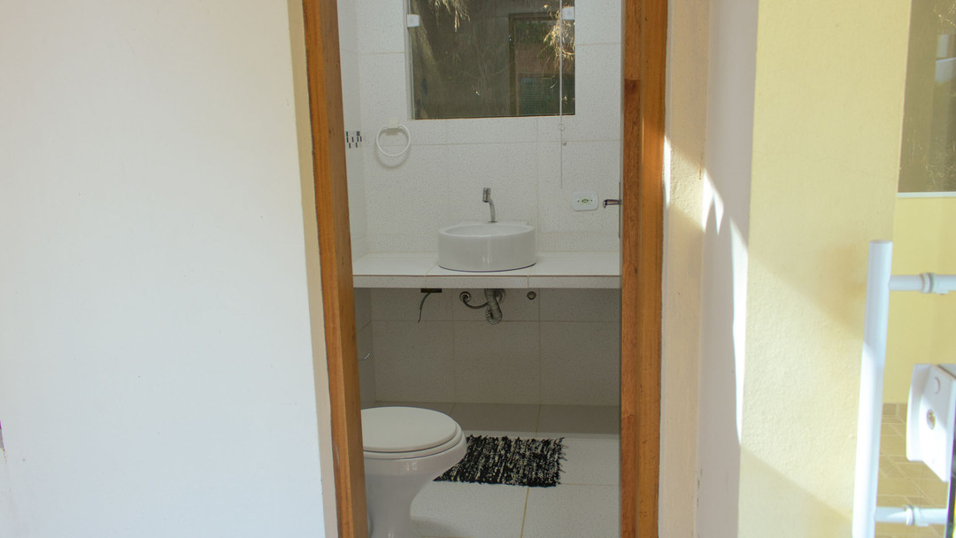 - Os banheiros possuem chuveiro a gás, box de vidro e secador de cabelo