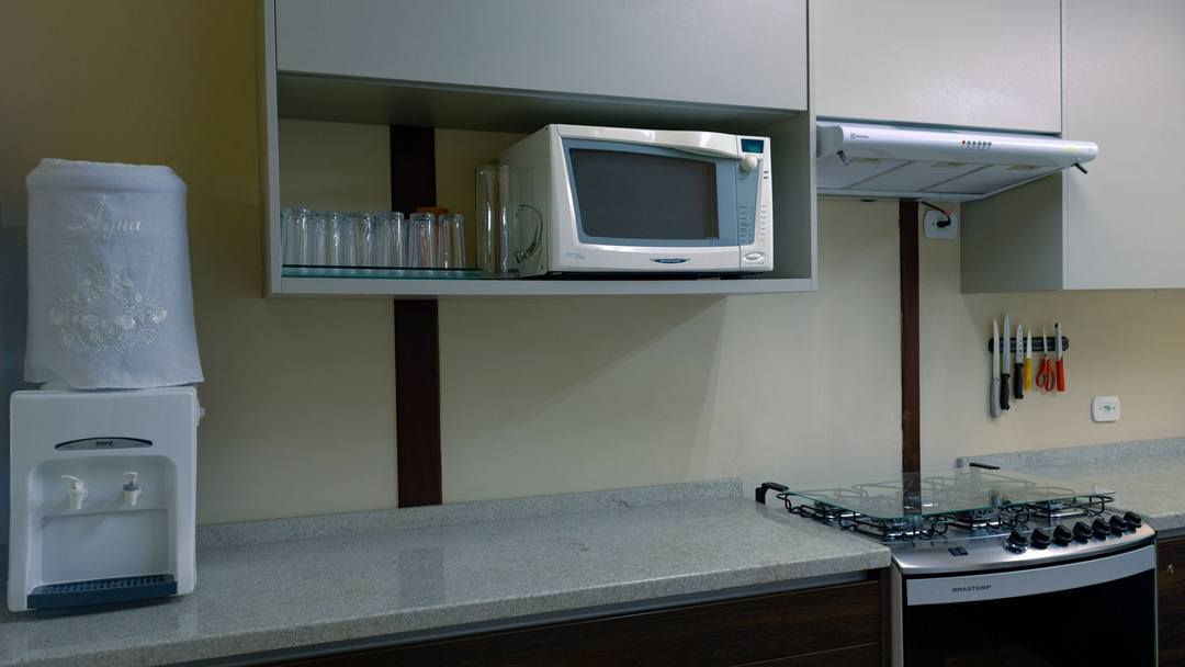 - Altamente equipada, a cozinha possui diversos utensílios necessários para preparar deliciosas refeições, incluindo cafeteira, fogão, forno, geladeira, liquidificador, micro-ondas, torradeira e exaustor