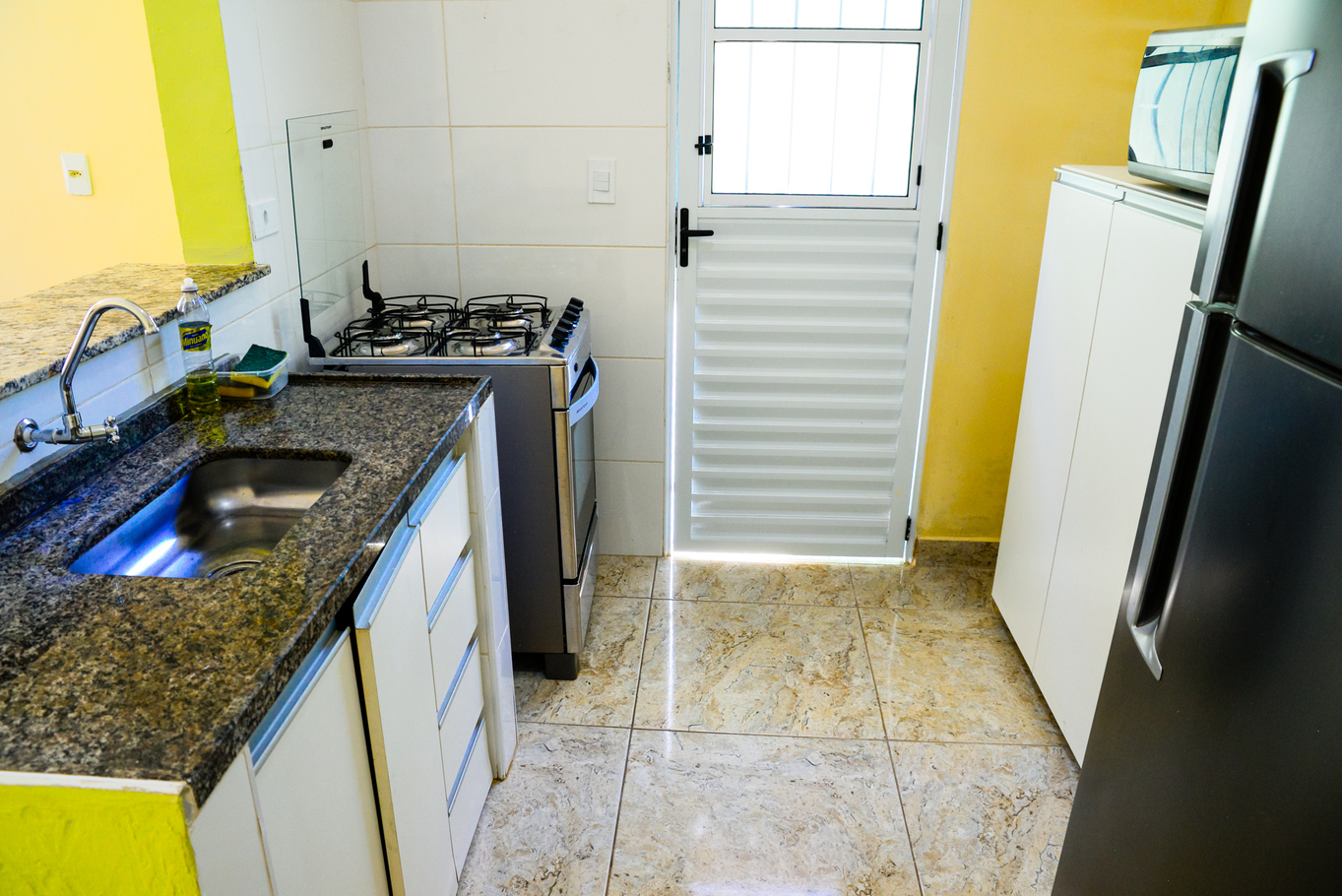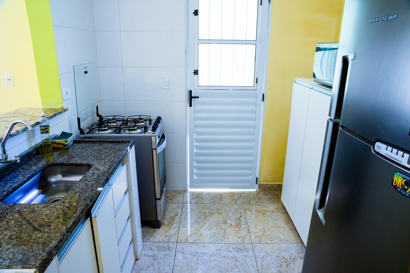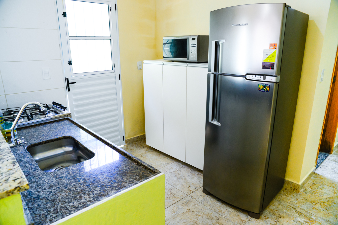 In the gas independent kitchen, refrigerator, microwave, oven, dishes/cutlery, kitchen utensils, juicer and hob are provided.